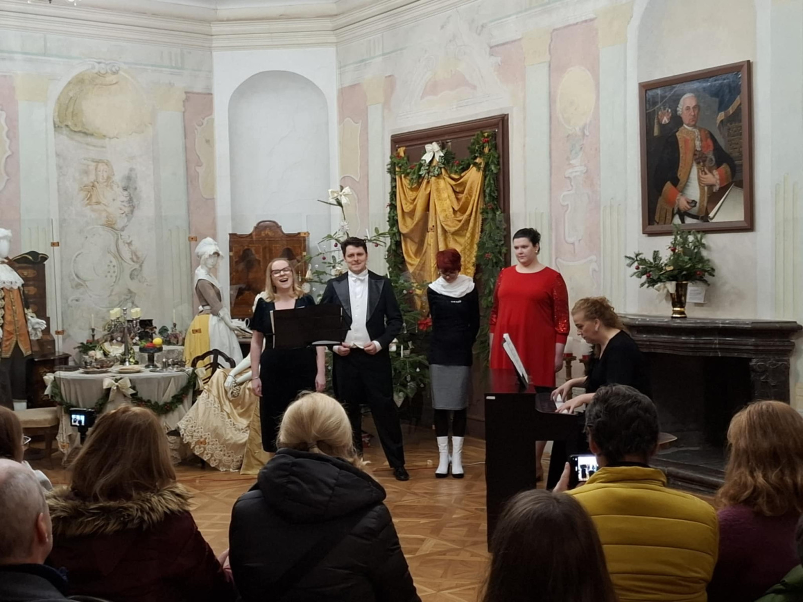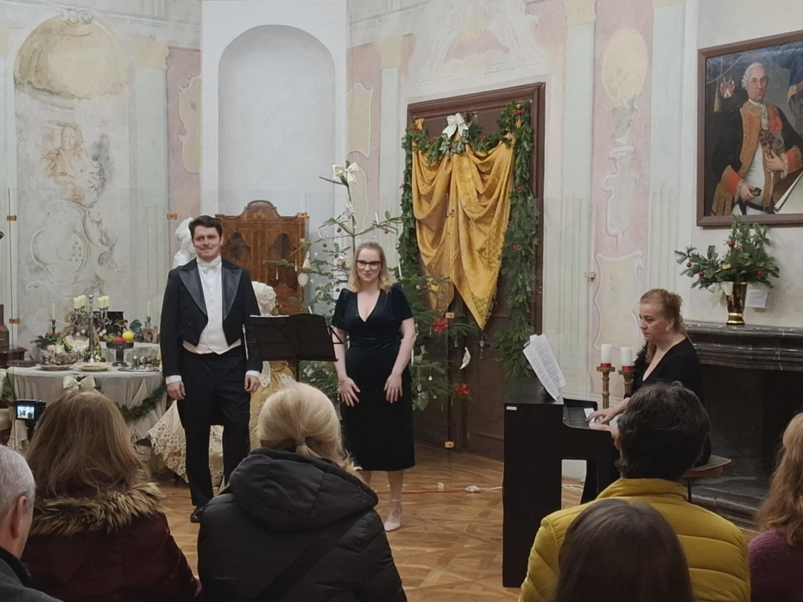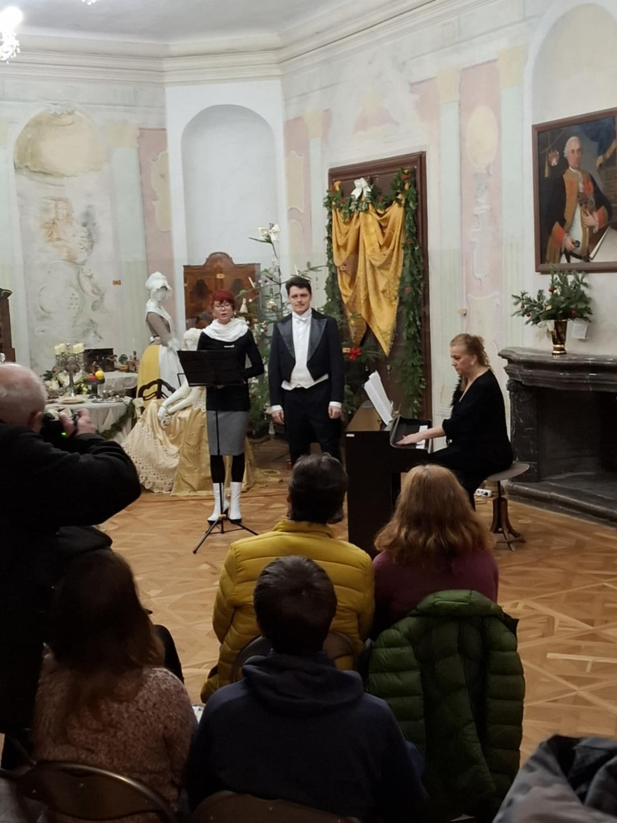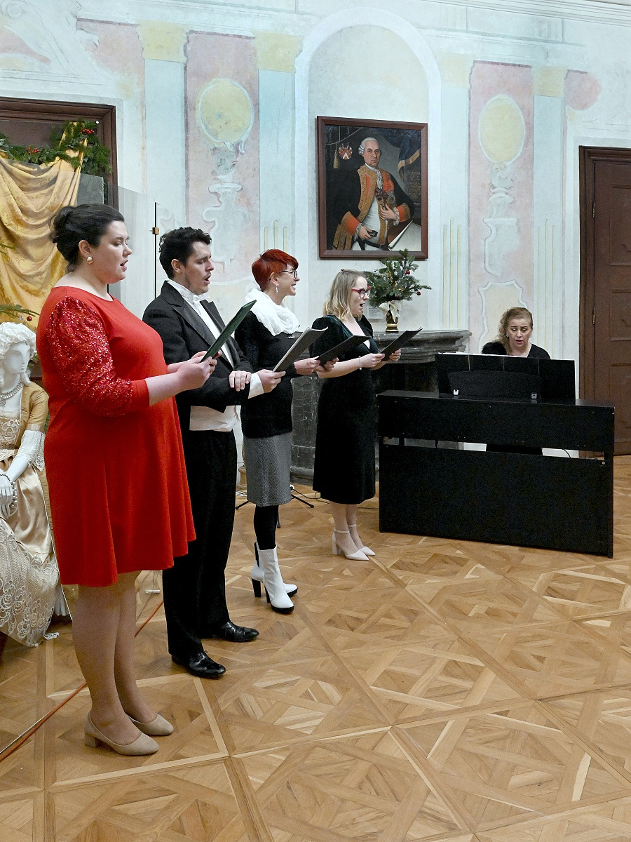 Pokoj ľuďom dobrej vôle – koncert pedagógov ZUŠ na 20. ročníku Štjavnyckého vjanočného jarmoku v sobotu v sále komorských grófov. Koncert podčiarkol výnimočnosť podujatia, ktorého pekné jubileum sme koncertom ešte slávnostnejšie oslávili. Venovali sme ho všetkým zamestnancom SBM, ktorí po mnoho rokov organizujú krásne podujatia. V sále komorských grófov zazneli vianočné piesne a koledy v slovenskom, anglickom i latinskom jazyku, krásne muzikálové a filmové duetá, skladby pre husle a klavír, organové prelúdiá i viachlasná Glória. A to v podaní piatich pánov učiteľov ZUŠ Petry Weisovej, Dany Konopkovej, Andrei Halibožekovej, Juraja Janiczeka a Ireny Chovanovej. Ďakujeme SBM za pozvanie a všetkým prítomným za ich vnímavosť, ocenenie i zapojenie sa do spoločnej Tichej noci.