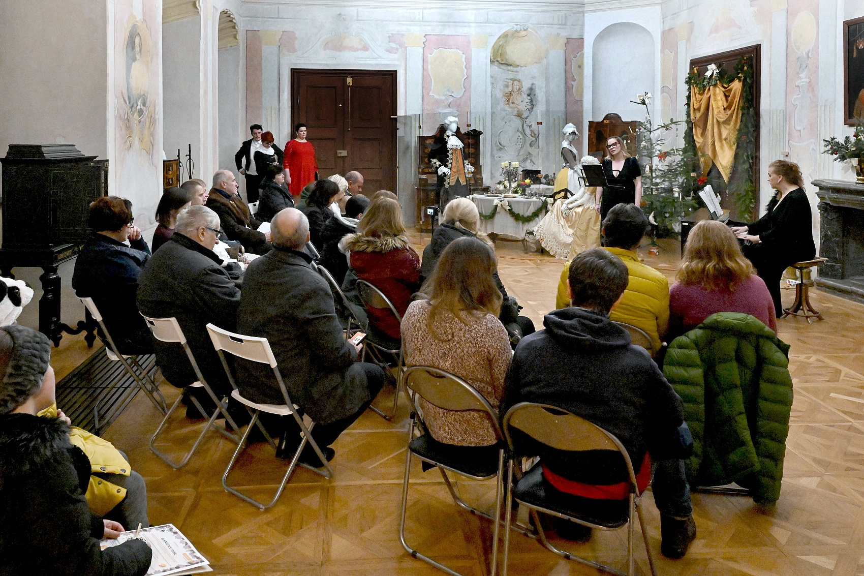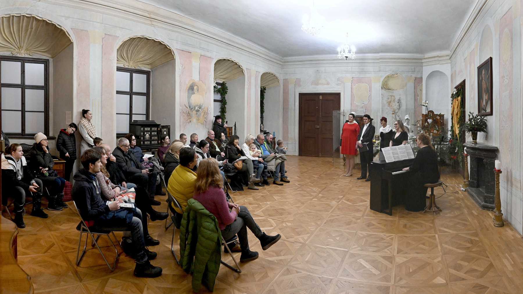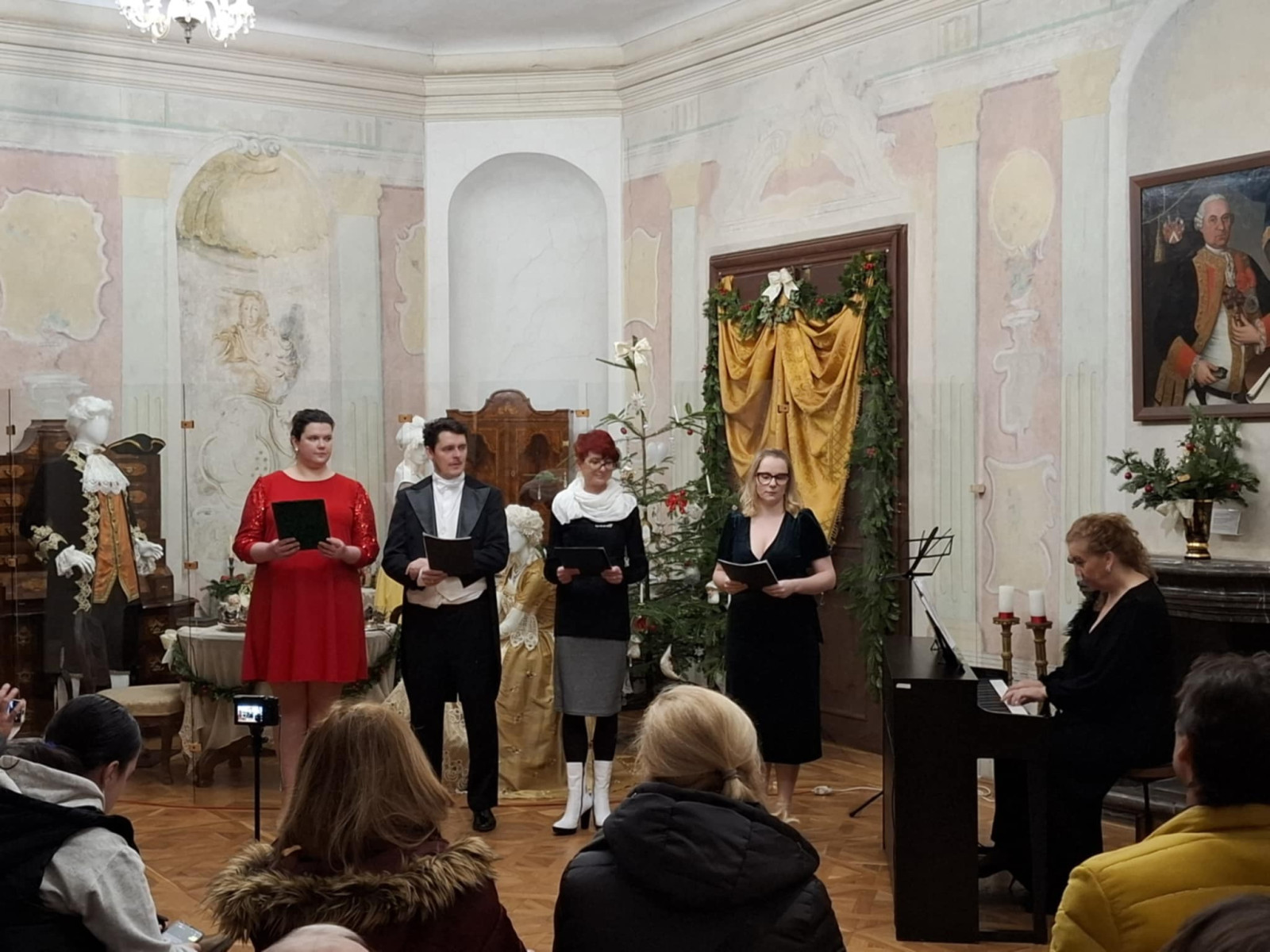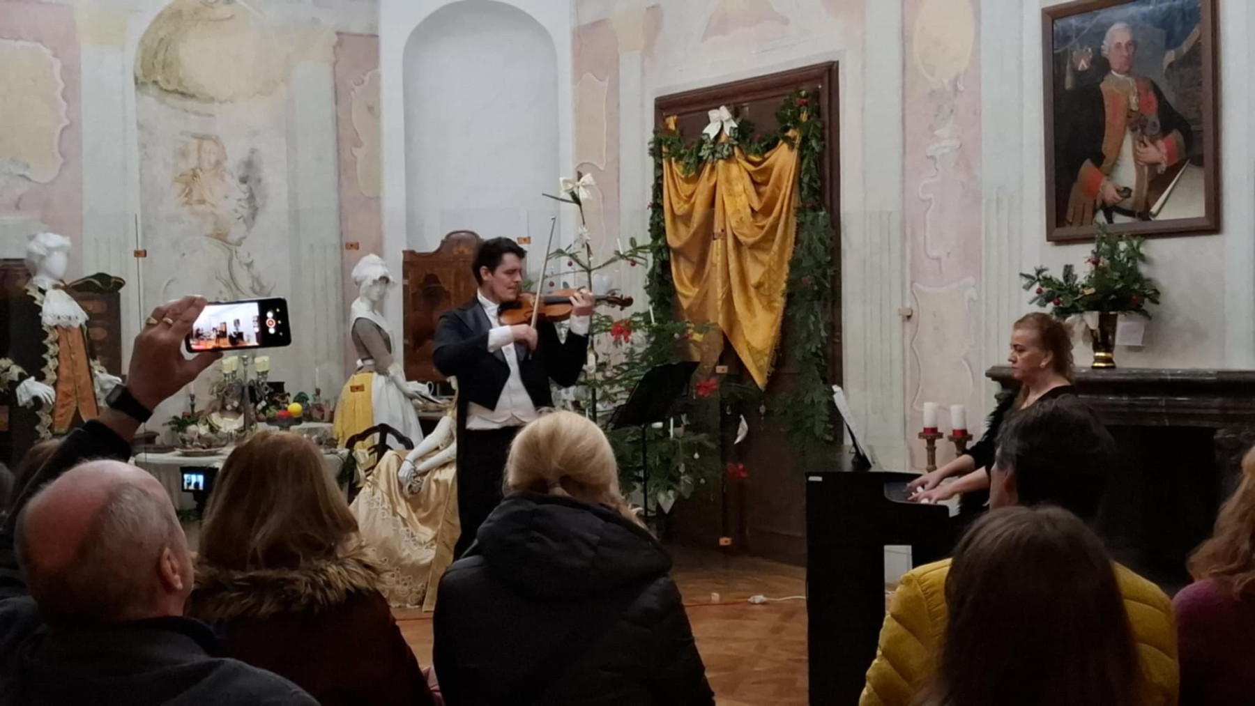 Pokoj ľuďom dobrej vôle – koncert pedagógov ZUŠ na 20. ročníku Štjavnyckého vjanočného jarmoku v sobotu v sále komorských grófov. Koncert podčiarkol výnimočnosť podujatia, ktorého pekné jubileum sme koncertom ešte slávnostnejšie oslávili. Venovali sme ho všetkým zamestnancom SBM, ktorí po mnoho rokov organizujú krásne podujatia. V sále komorských grófov zazneli vianočné piesne a koledy v slovenskom, anglickom i latinskom jazyku, krásne muzikálové a filmové duetá, skladby pre husle a klavír, organové prelúdiá i viachlasná Glória. A to v podaní piatich pánov učiteľov ZUŠ Petry Weisovej, Dany Konopkovej, Andrei Halibožekovej, Juraja Janiczeka a Ireny Chovanovej. Ďakujeme SBM za pozvanie a všetkým prítomným za ich vnímavosť, ocenenie i zapojenie sa do spoločnej Tichej noci.