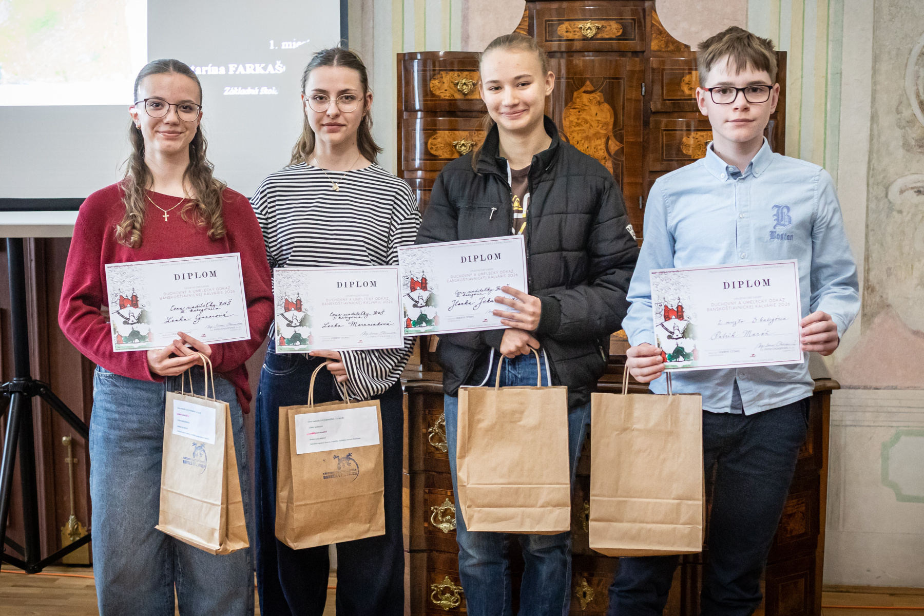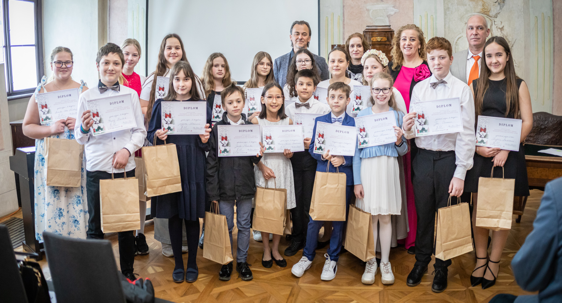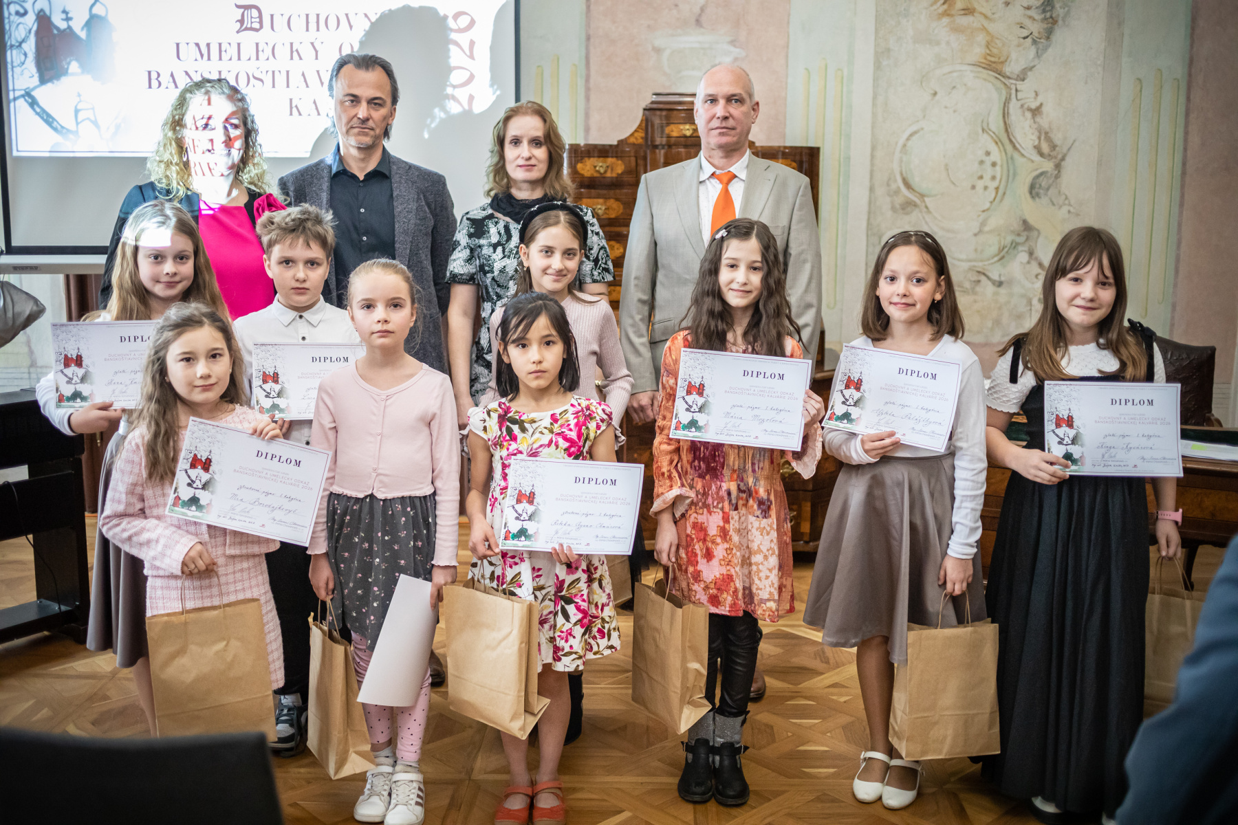 Zlaté pásmo: Lucas Mojička, Hanka Kminiaková (trieda I. Chovanová), Alžbetka Palášthyová a Matúško Durbák (trieda Terézia Beňová)