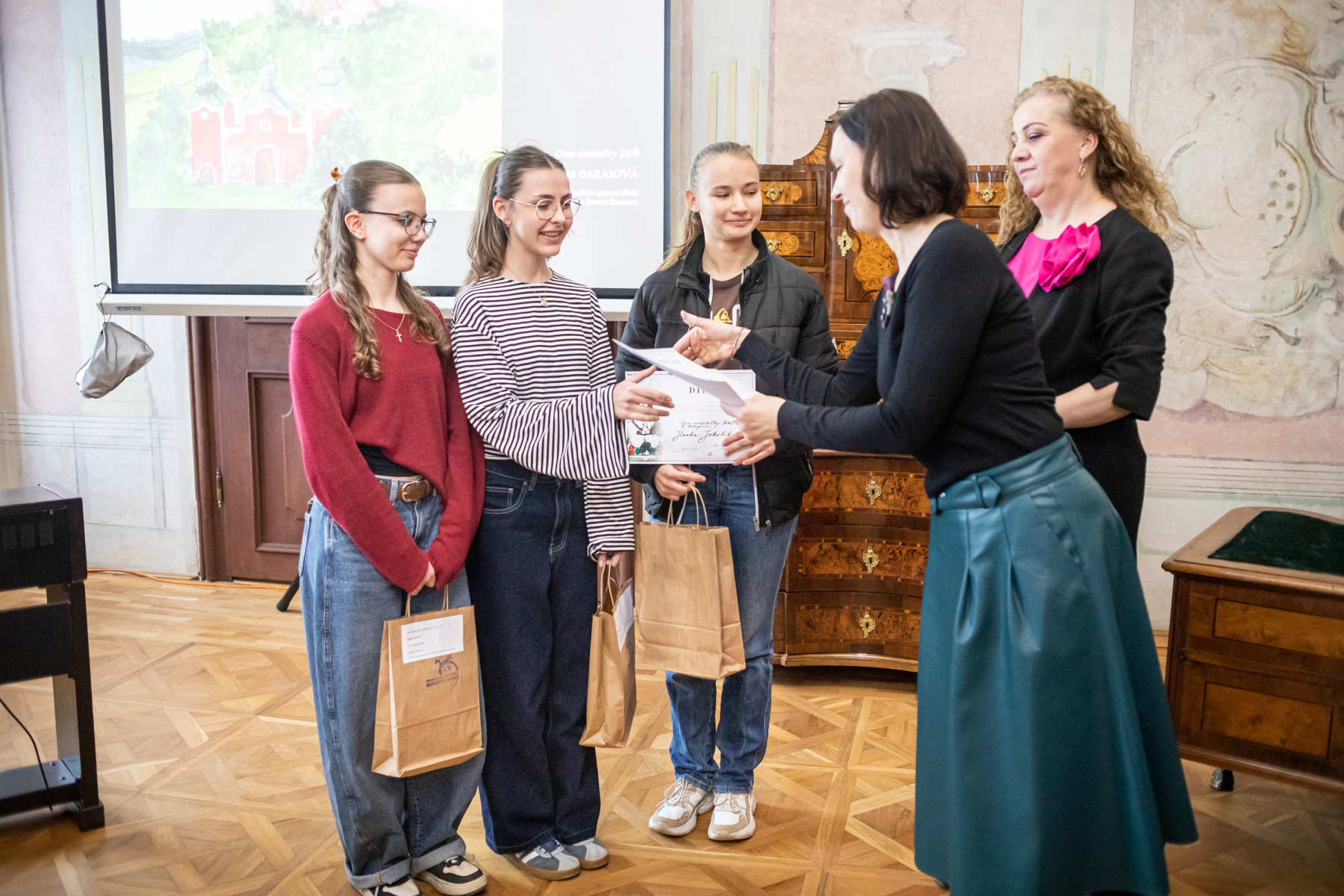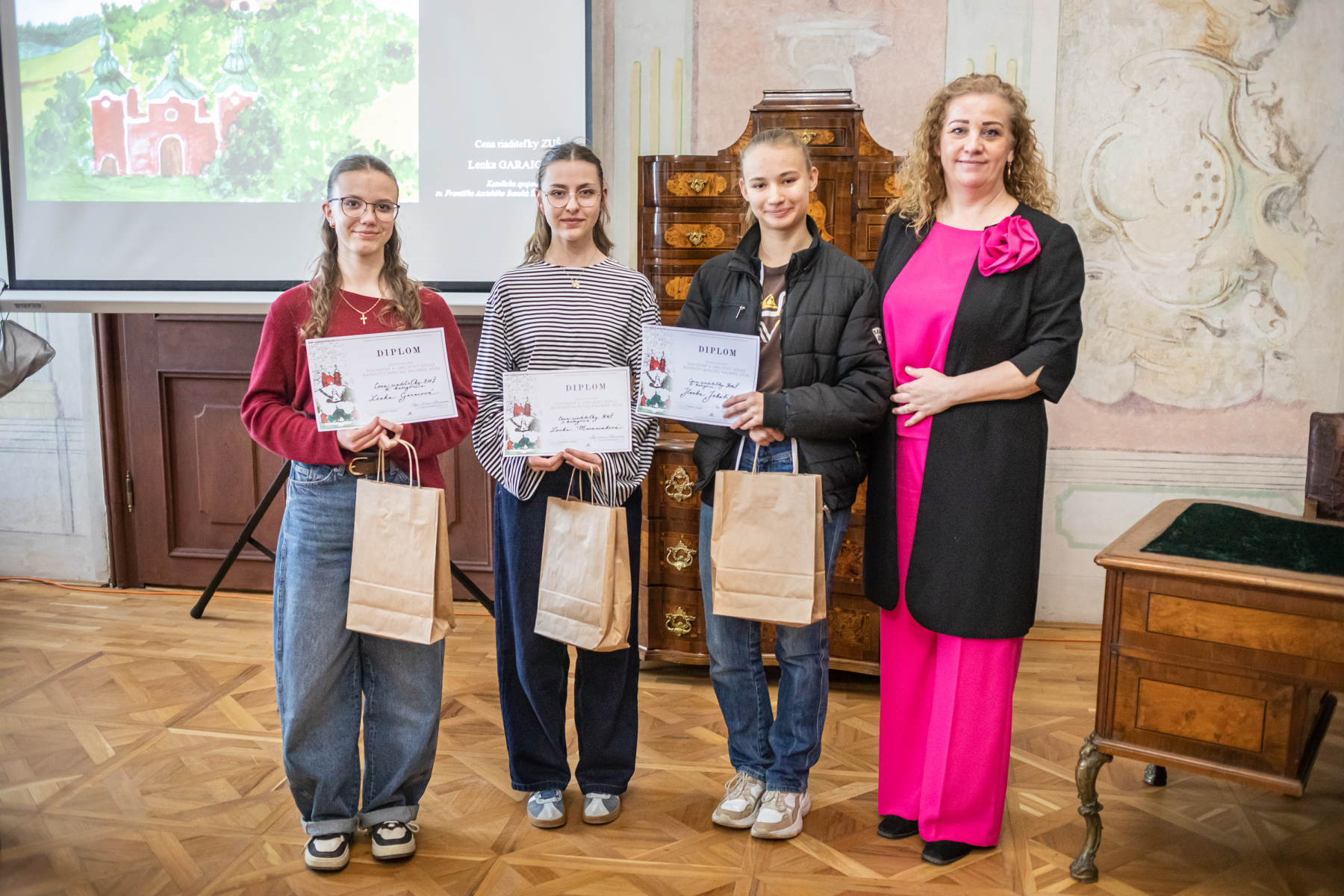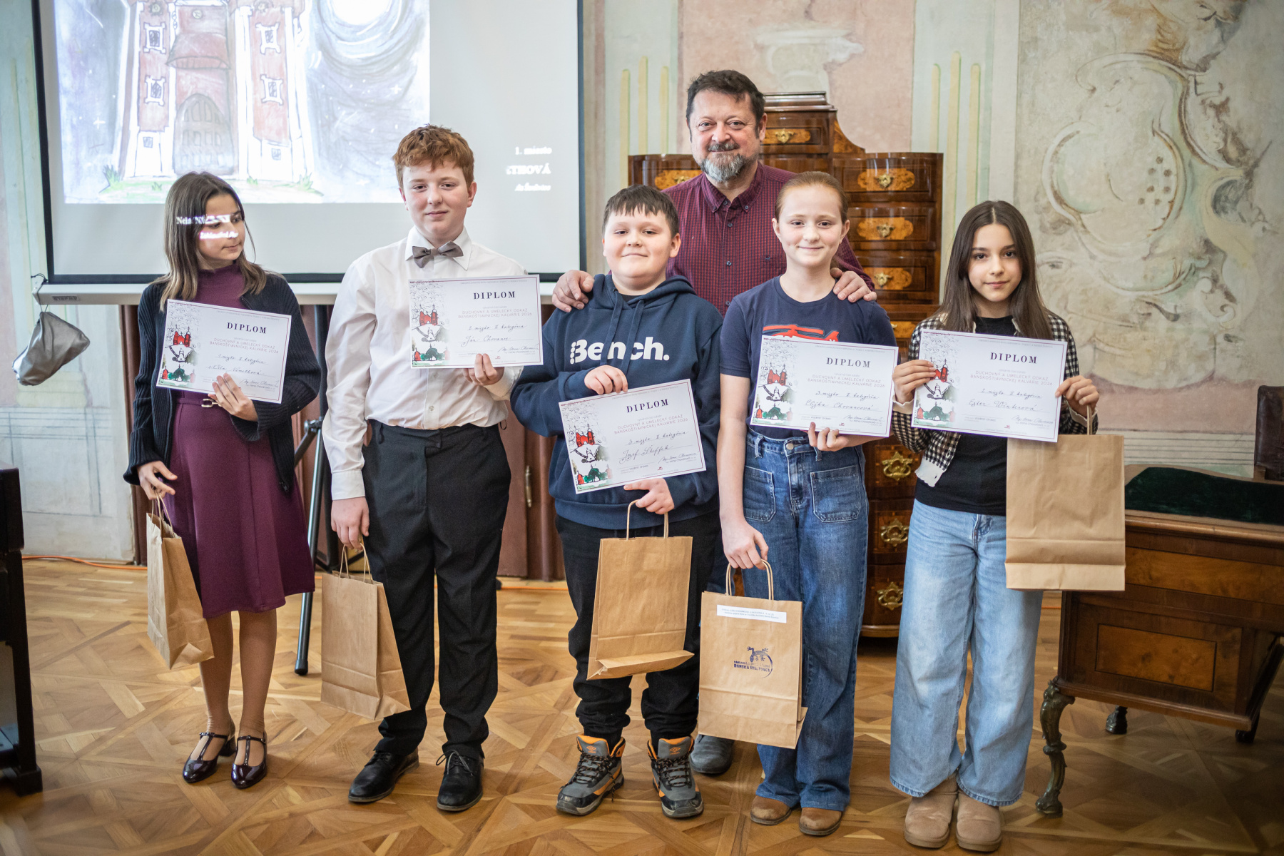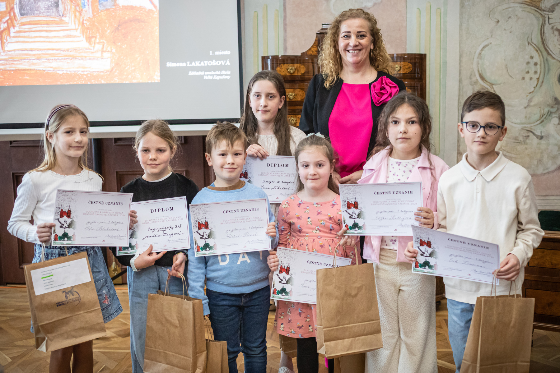 Zlaté pásmo: Lucas Mojička, Hanka Kminiaková (trieda I. Chovanová), Alžbetka Palášthyová a Matúško Durbák (trieda Terézia Beňová)