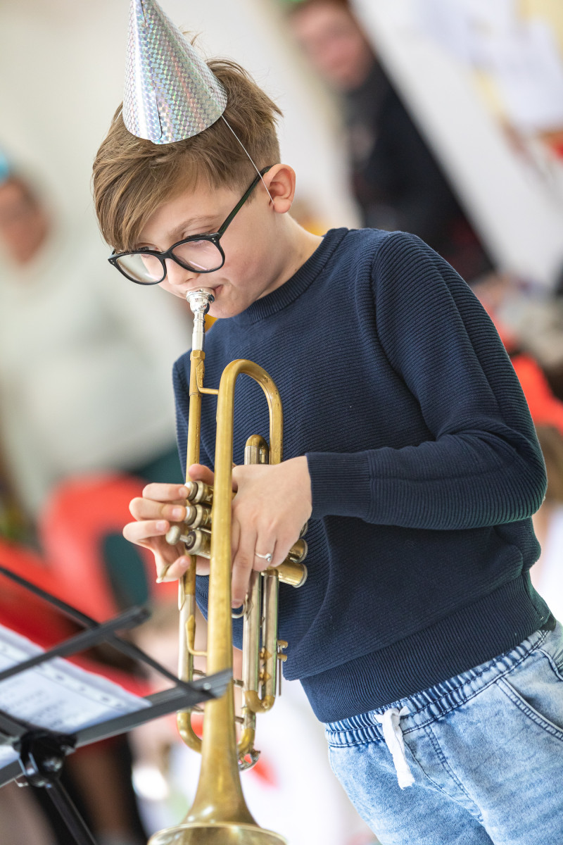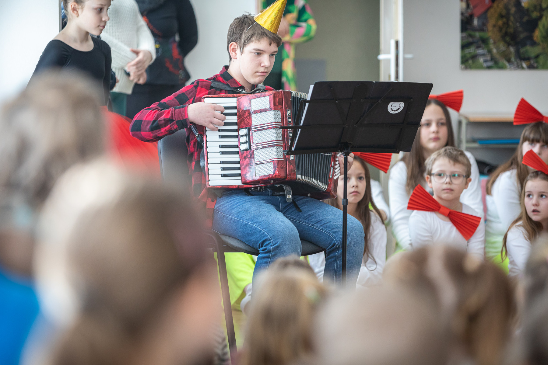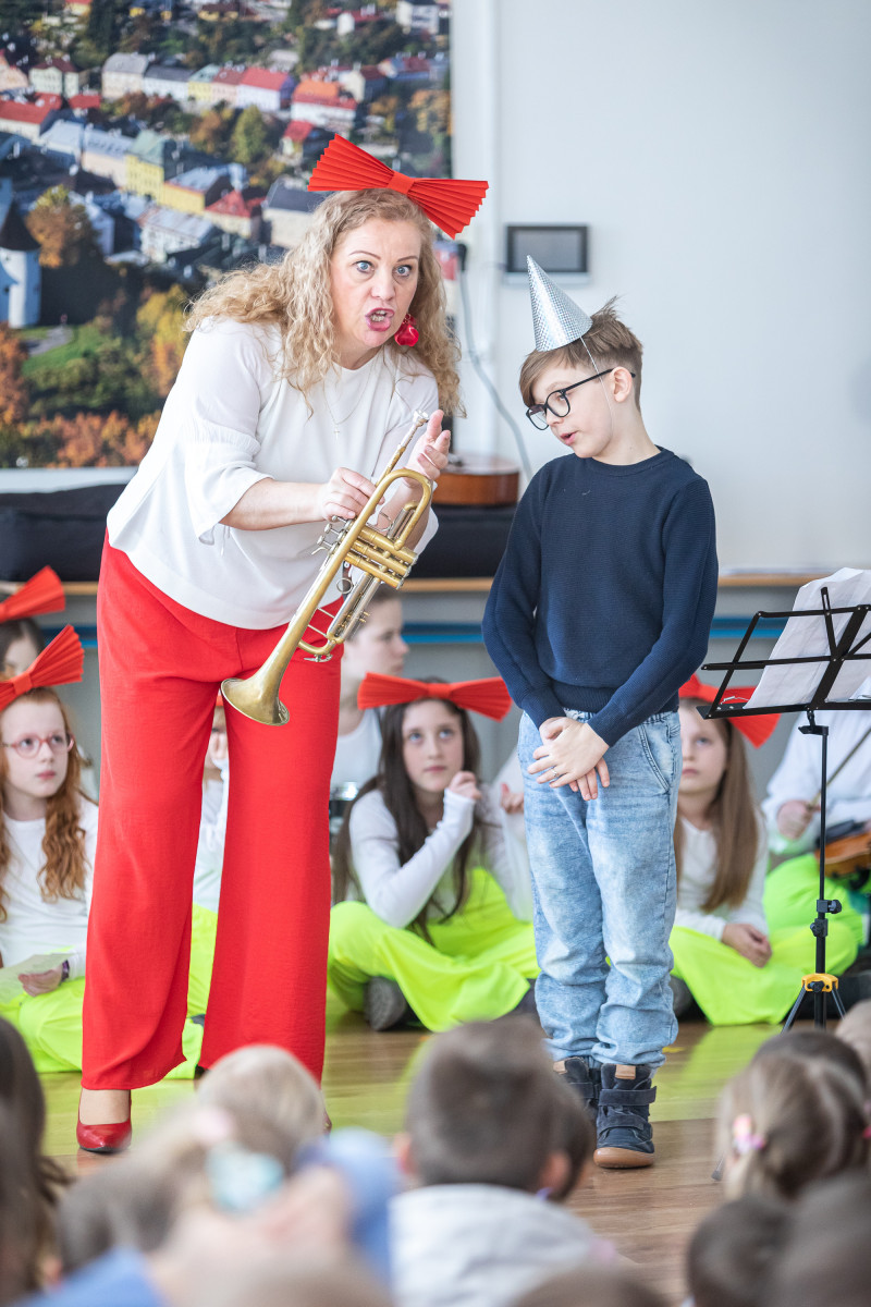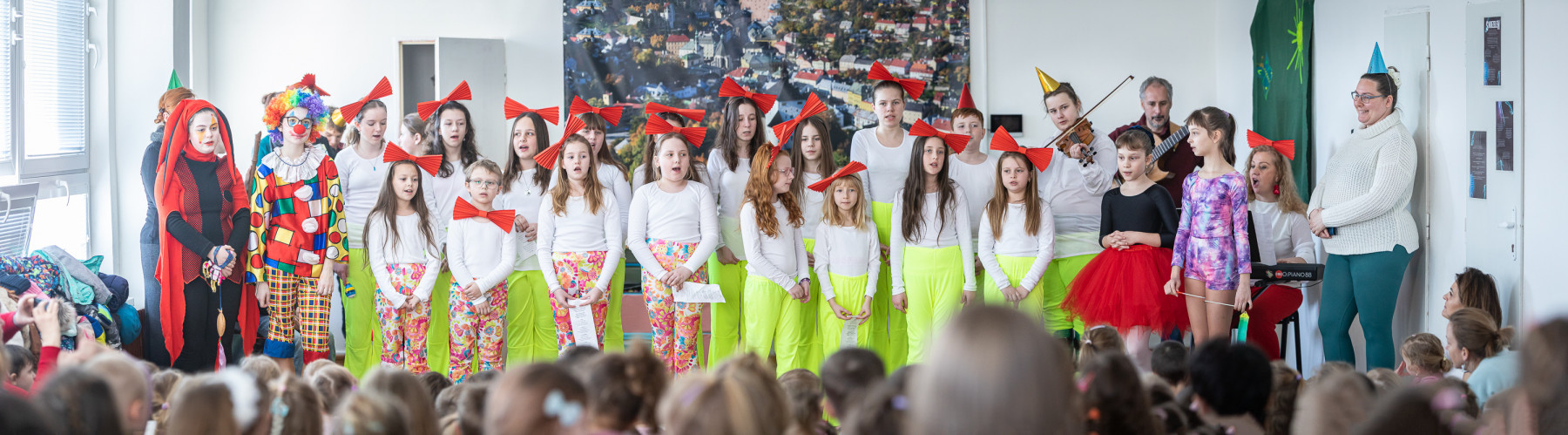 Po jednotlivých nástrojoch nasledoval spoločný refrén: „Cirkus ten domov je náš, orchester v každom spoznáš, pridaj sa k nám, spievaj a hraj, tancuj, úsmev rozdávaj.“ Výchovných koncertov sa zúčastnili speváci Zboríku: K. Ujlakyová, V. Líšková, N. Imrišková, K. Foltánová, M. Dobrovičová, A. Knezovičová, I. Baarová, T. Vasiľ, B. Vasiľová, J Chovanec, P. Sopko, A. Daubnerová, A. Palášthyová, H. Kminiaková, L. Lukáčová, S. Chrančoková, E. Žuchová, Ch.R. Petr. Žiakov ZUŠ ďalej pripravili p. uč. A. Turčan, T. Valiček, T. Šusteková, M. Piatrov. Svoje vystúpenie sme zakončili poďakovaním za pozvanie, za vnímavé publikum a spoločným dvojhlasným spevom s posolstvom: „My hráme vám, nech každé z rán, prebúdza v každom z nás DOBRO a LÁSKU zas.“