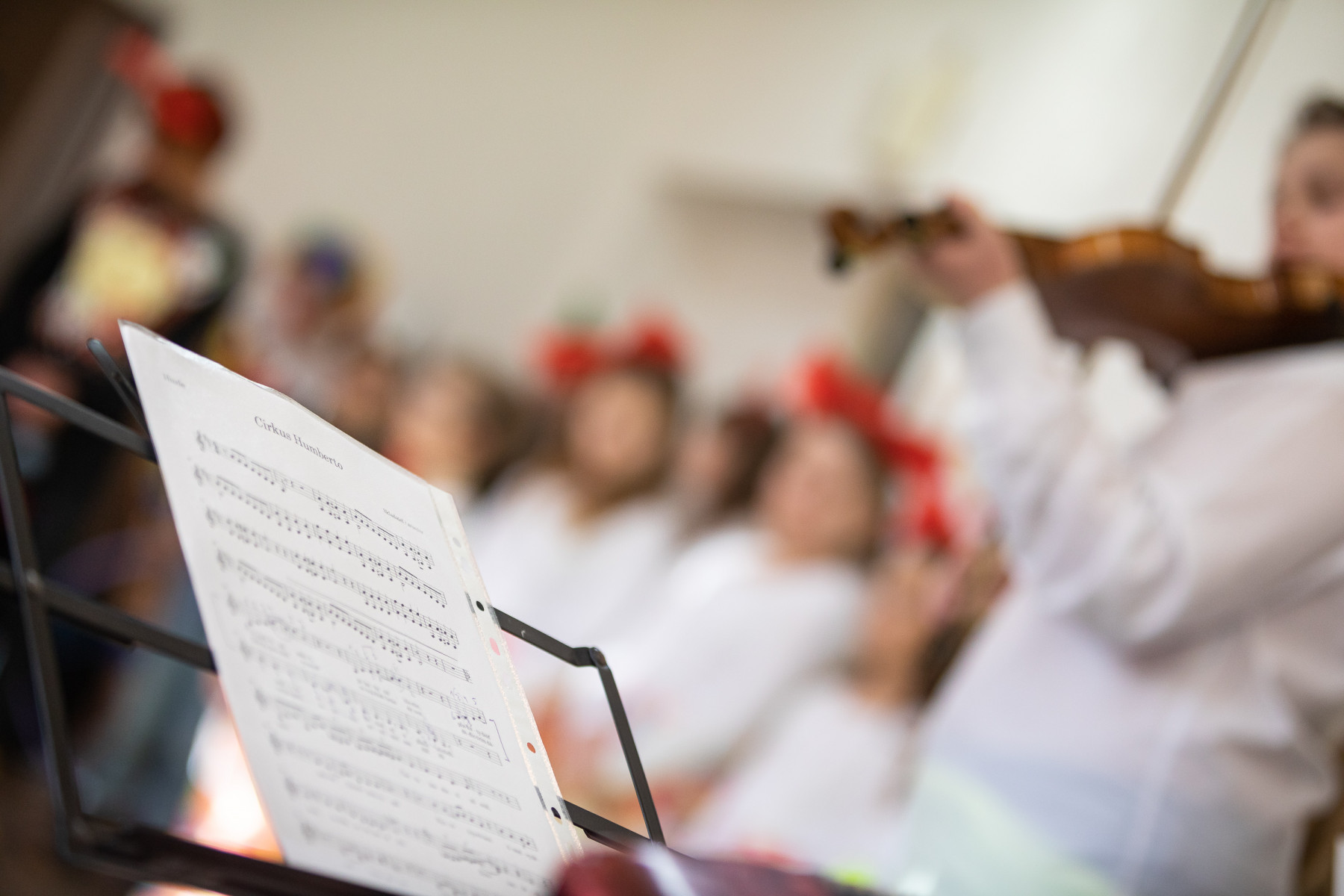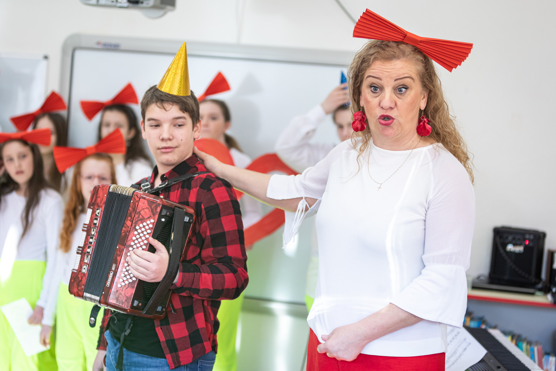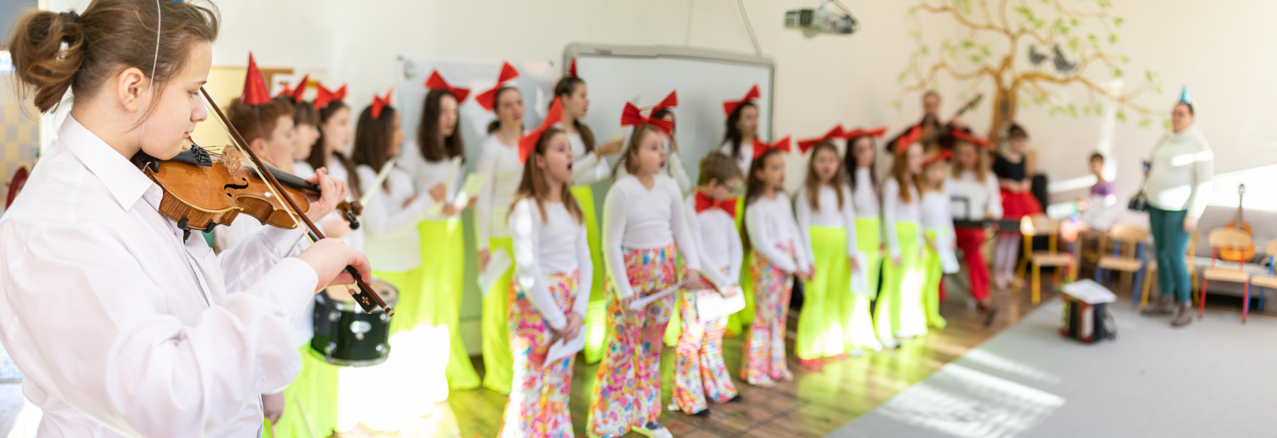 Po jednotlivých nástrojoch nasledoval spoločný refrén: „Cirkus ten domov je náš, orchester v každom spoznáš, pridaj sa k nám, spievaj a hraj, tancuj, úsmev rozdávaj.“ Výchovných koncertov sa zúčastnili speváci Zboríku: K. Ujlakyová, V. Líšková, N. Imrišková, K. Foltánová, M. Dobrovičová, A. Knezovičová, I. Baarová, T. Vasiľ, B. Vasiľová, J Chovanec, P. Sopko, A. Daubnerová, A. Palášthyová, H. Kminiaková, L. Lukáčová, S. Chrančoková, E. Žuchová, Ch.R. Petr. Žiakov ZUŠ ďalej pripravili p. uč. A. Turčan, T. Valiček, T. Šusteková, M. Piatrov. Svoje vystúpenie sme zakončili poďakovaním za pozvanie, za vnímavé publikum a spoločným dvojhlasným spevom s posolstvom: „My hráme vám, nech každé z rán, prebúdza v každom z nás DOBRO a LÁSKU zas.“