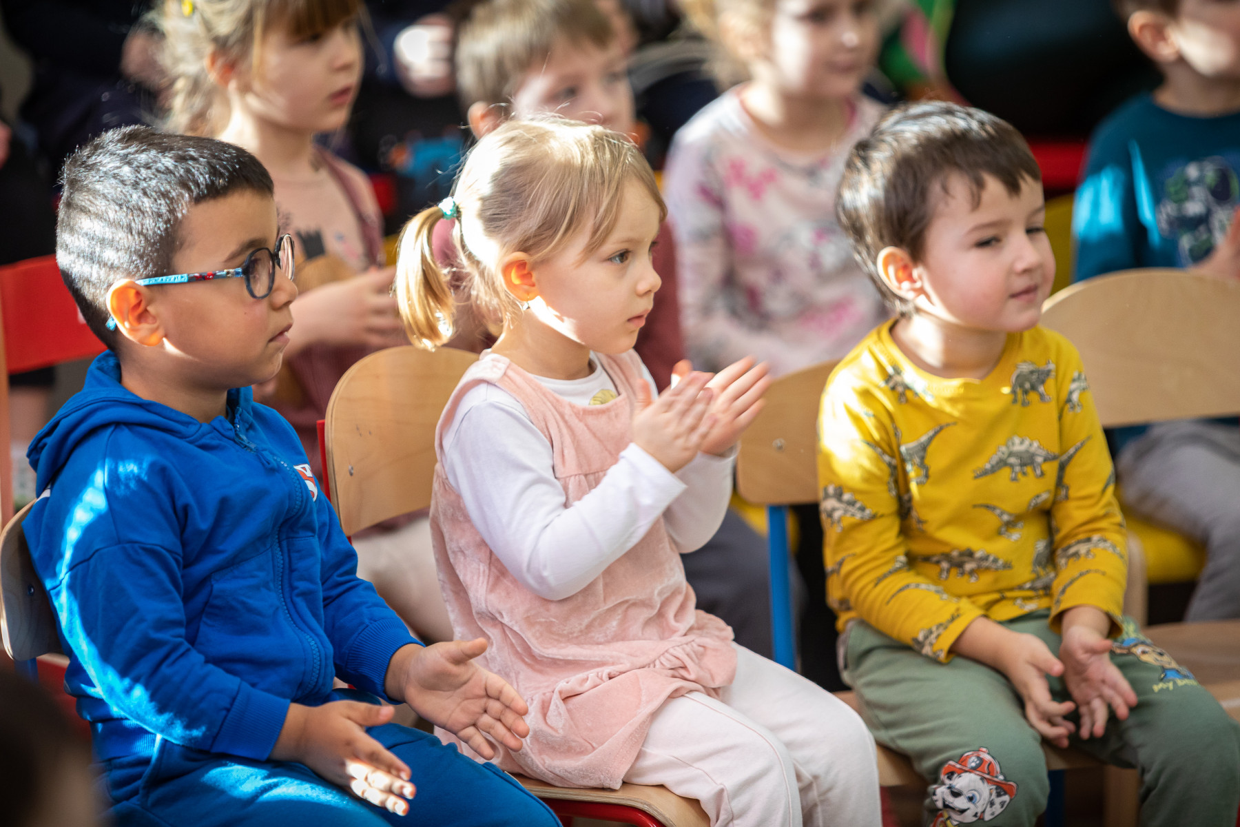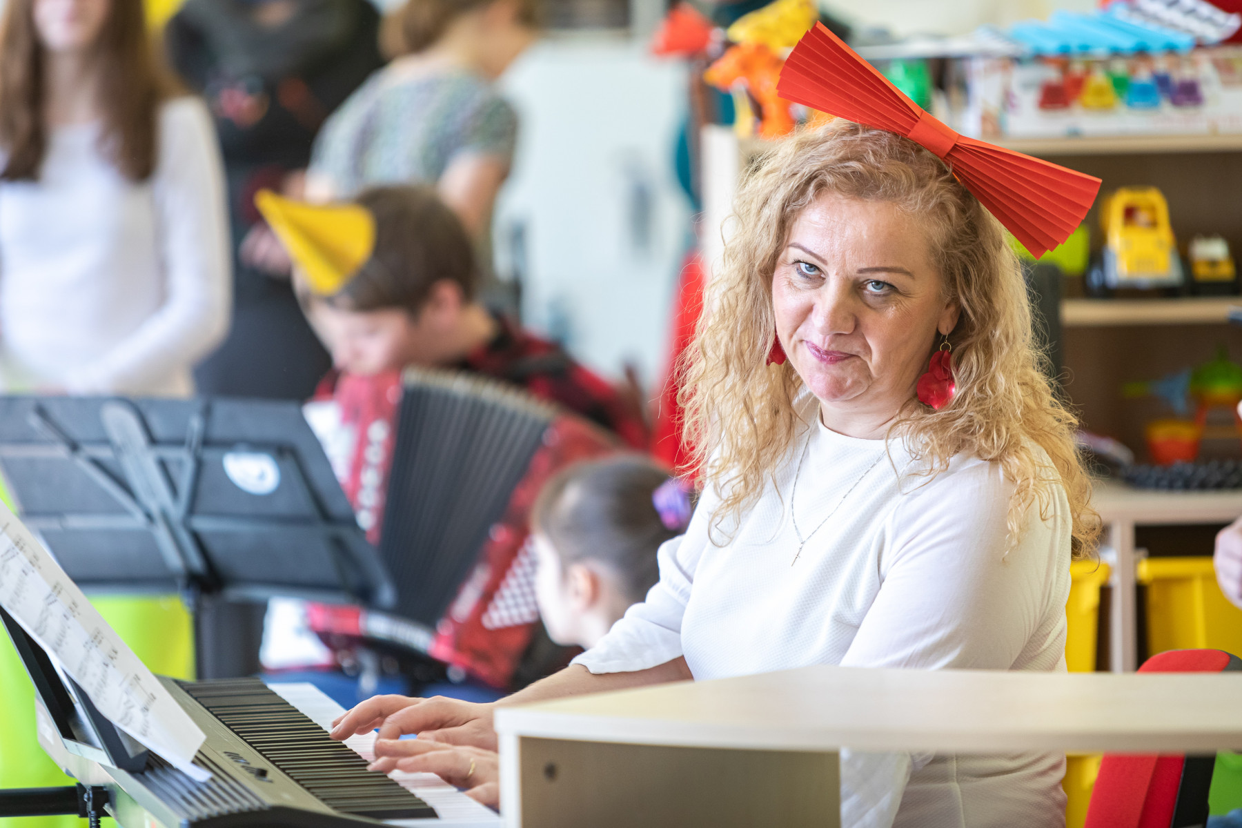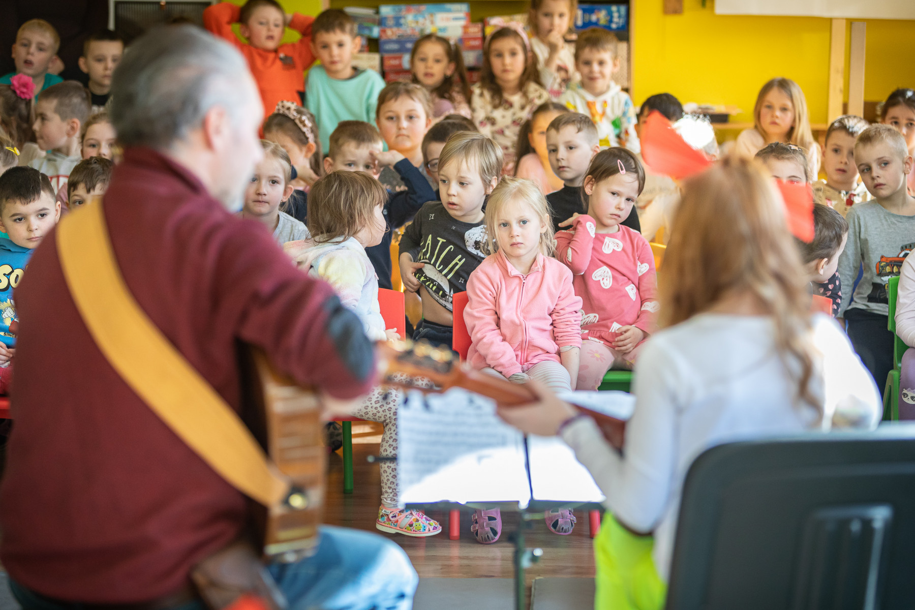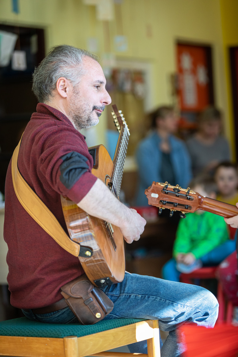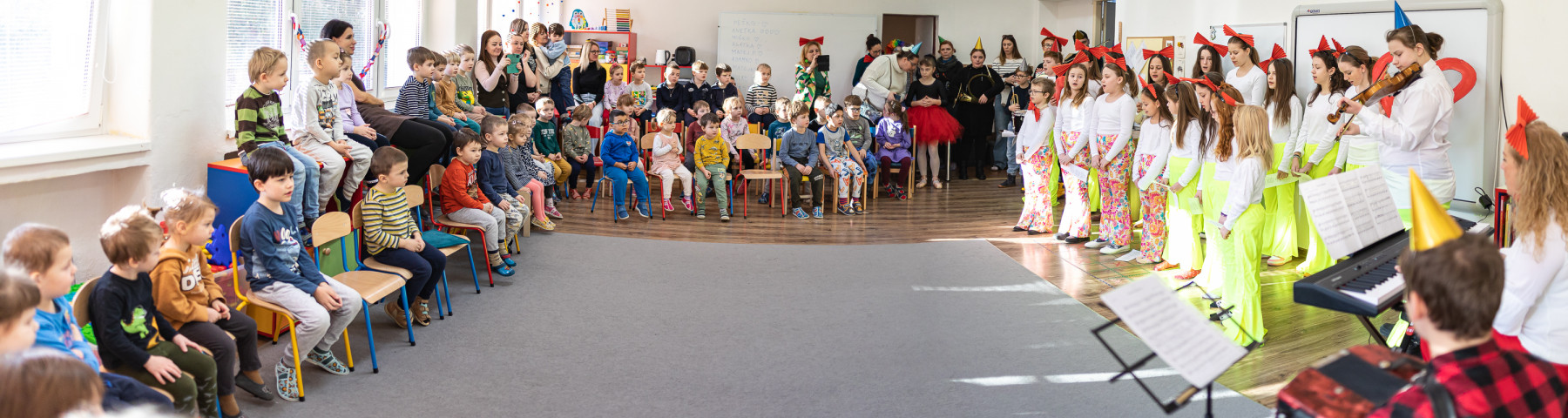 ..V rámci spolupráce s materskými školami organizujeme každoročne výchovné koncerty. Detičky v škôlkach. Je to vždy zážitok a celkom výzva zaujať najmenšie detičky a predstaviť im čaro hudby, tanca, divadla. Za jedno dopoludnie sme s deviatimi pánmi učiteľmi (M. Jánošík, P. Weisová, I. Chovanová, Z. Kovárová, Ľ. Klimková, I. Beňová, J. Janiczek, R. Borodajkevyč, Knezovičová, s pánom Trubanom a s asi 25 žiakmi navštívili tri rôzne predškolské zariadenia. Po minuloročnom „námorníckom“ programe sme prišli ako CIRKUS HUMBERTO, ktorého príchod do škôlok bubienkom ohlasoval Janko Chovanec. Deťom sme zaspievali, zahrali i zatancovali najskôr v MŠ KSŠ sv. Františka Assiského, pokračovali sme v MŠ Križovatka 1 a svoje „cirkusové turné“ sme zakončili v MŠ Bratská na Drieňovej. V asi 50 minútovom programe deťom a pani učiteľkám zatancovali šikovné tanečnice – baletky Peťka Benčajová a Sofia Moudrá a veselými vstupmi prispeli žiačky literárno-dramatického odboru Jasna Razawi a Liana Šavoltová. Inšpiráciou pre p. riaditeľku pri príprave výchovného koncertu bola krásna melódia Karla Svobodu z českého seriálu Cirkus Humberto, ktorej verše prebásnila na jednotlivé HUDOBNÉ NÁSTROJE. Škôlkári sa tešili, počúvali, žasli, usmievali sa, tlieskali a aj spievali. Postupne sme predstavili husle (Peter Sopko zahral Menuet od Bocceliniho) , klavír (skladbičku Tanec od Martina Jánošíka zahrala Noemi Imrišková), flautu (skladbu s príznačným názvom Cirkus zahrala Karolínka Filkorová). Zaznel i akordeón (Richard Lupták sl. ľudová Dedinka v údolí), efektná trúbka (Viliam Lipták zanôtil pieseň My Dream), lesný roh (rozoznela poľovníckymi signálmi Uvítanie a Začiatok činnosti Hanka Malatincová). Pri speve sme zdôraznili, že ten najvzácnejší „hudobný nástroj“ máme vo svojom hrdle. Zvonivým hlasom prispeli Bianka Vasiľová v pop. piesni Chytila jsem na pasece motýlka a Hanka Kminiaková v ľud. piesni Sitno moje Sitno. Bubeníčka Alicka Knezovičová hravo prezentovala rôzne druhy bicích nástrojov a zahrala sa s detičkami hru na ozvenu. Gitarovou skladbičkou Jar prípravkárka Sofinka Chrančoková spolu sp. uč. Robkom privolávala jar a predstavila jednotlivé časti gitary.
