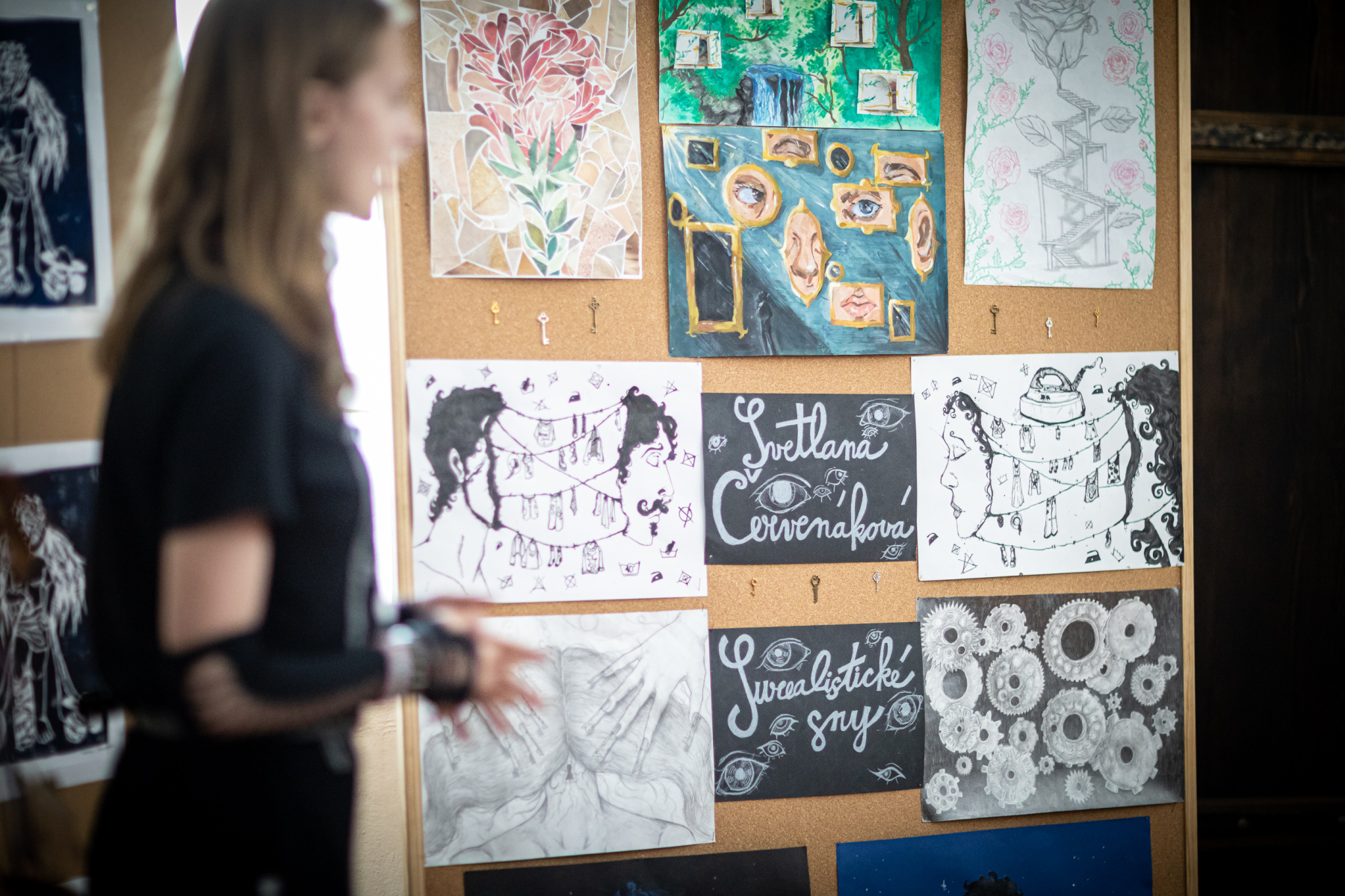 „Surealistické sny“  vo svojej práci snívala Svetlana Červenáková.  Pootvorila čarovné okná, odomkla malými kľúčikmi svet, v ktorom sa kolieska času krútia inak.