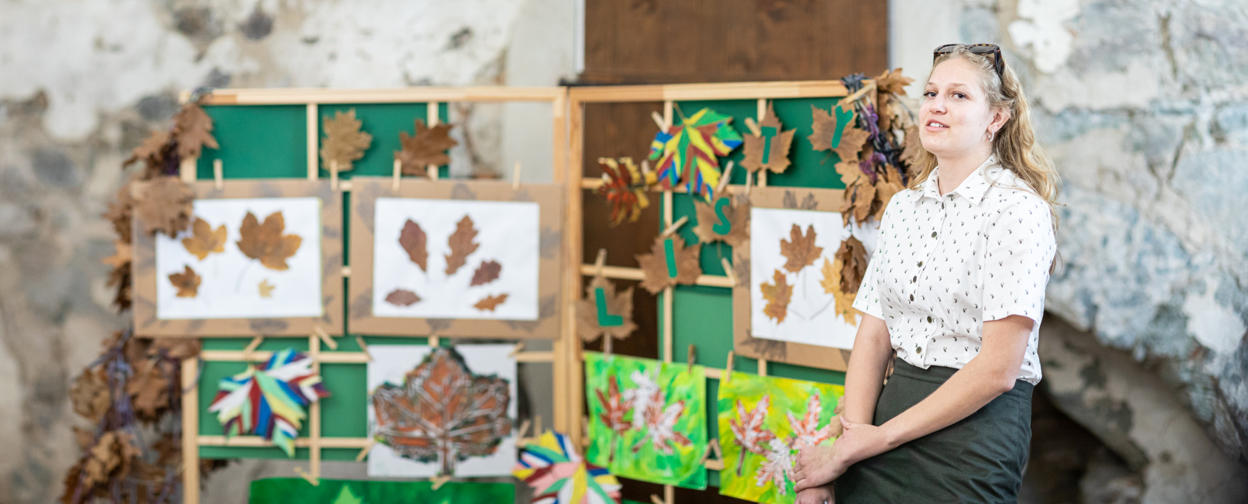 Nataša Piffková si príznačne k svojmu štúdiu na lesníckej škole vybrala ako tému „Listy“. Ich detail priblížila v kresbe aj maľbe i v množstve listov na živej girlande.
