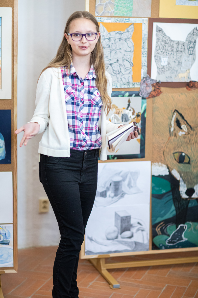 V stredu 11. 6. o 15:00 priestory „ Knižnice“ v Starom zámku ožili hudbou, slovami  a farbami. Tento školský rok až 16 mladých výtvarníkov  z výtvarného odboru ZUŠ Banská Štiavnica tam otváralo svoju absolventskú výstavu.  Žiaci 5. ročníka 2. časti I. stupňa a žiačka 4. ročníka II. stupňa v krásnych historických  priestoroch predstavovali svoje nové umelecké počiny.  Doteraz sa vyjadrovali  v tichosti výtvarných materiálov, celý školský rok vytvárali svoje práce v rôznych umeleckých technikách. No teraz museli na tomto mieste prezentovať svoje práce aj slovami.