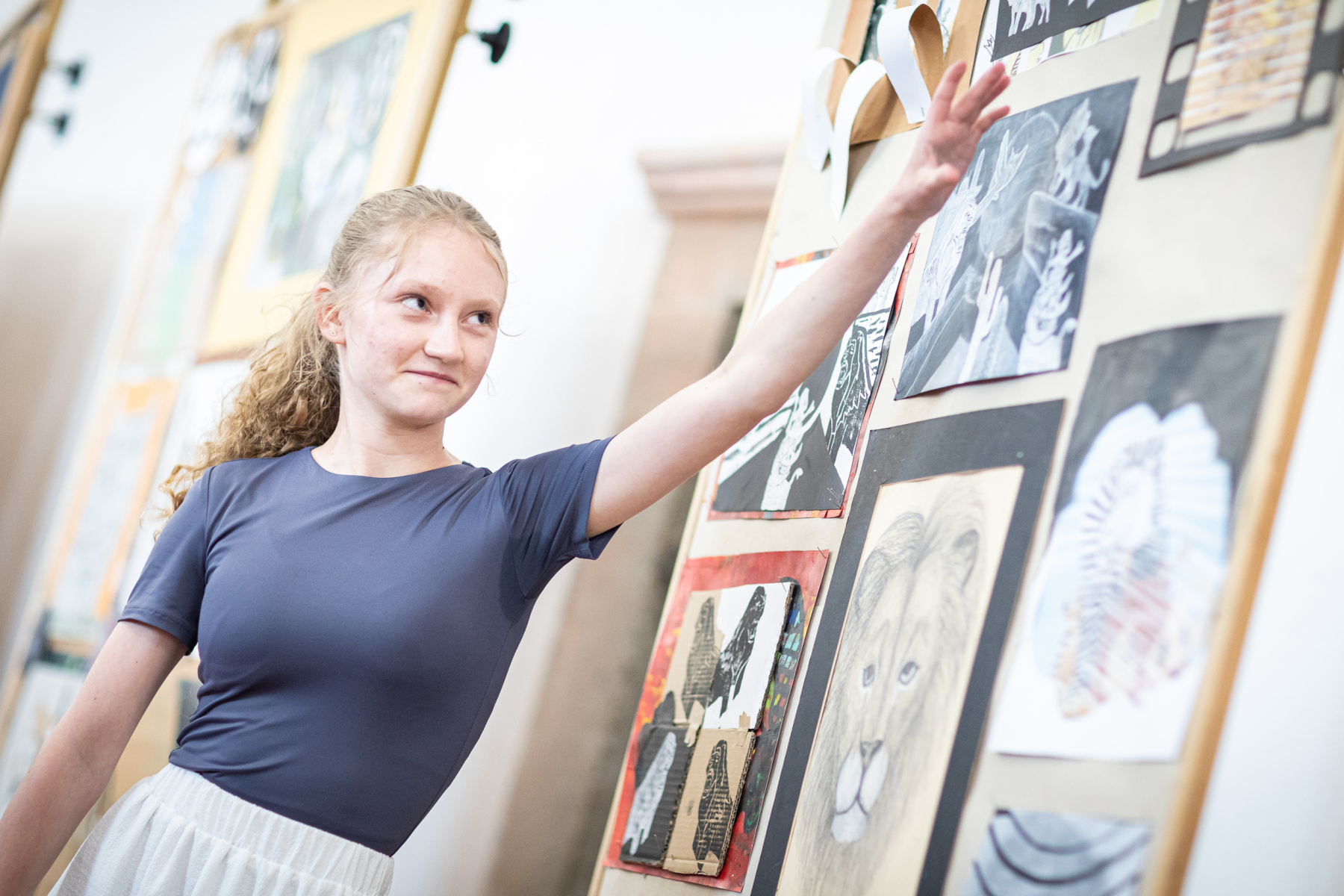 Linda Gemzová nás pozvala do prírody. S detskou hravosťou vyskladala plošné portréty zvierat.