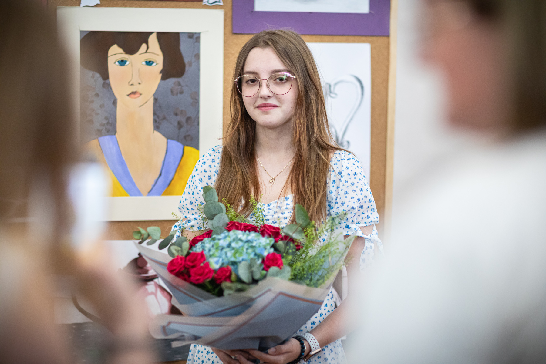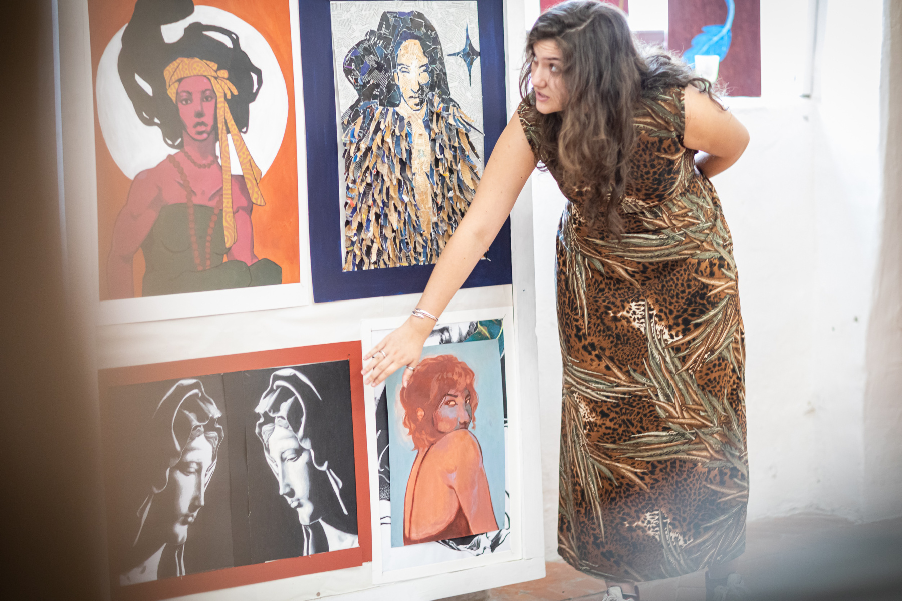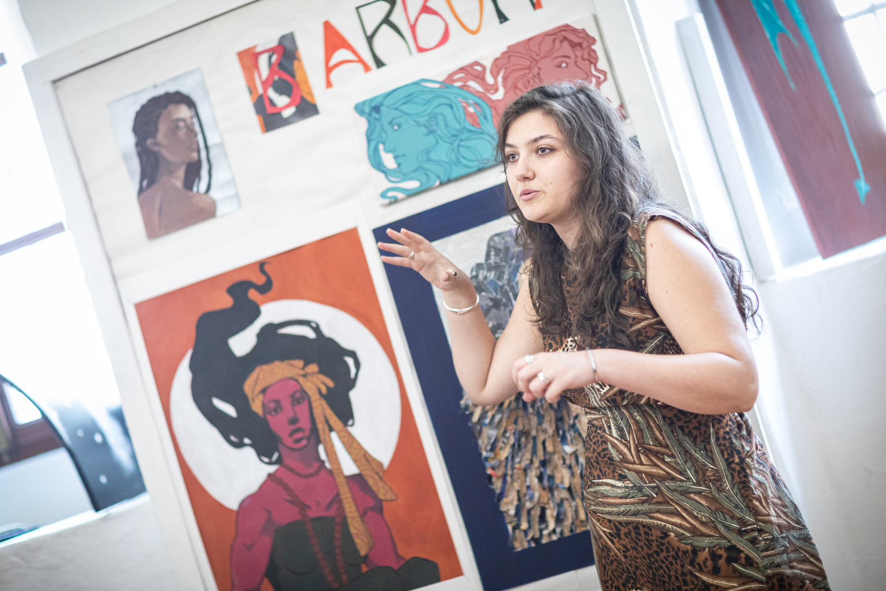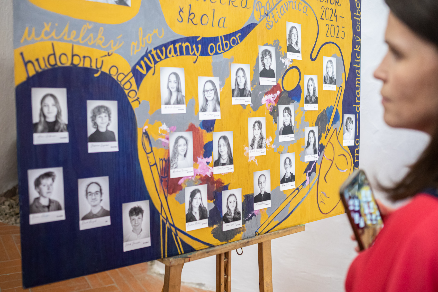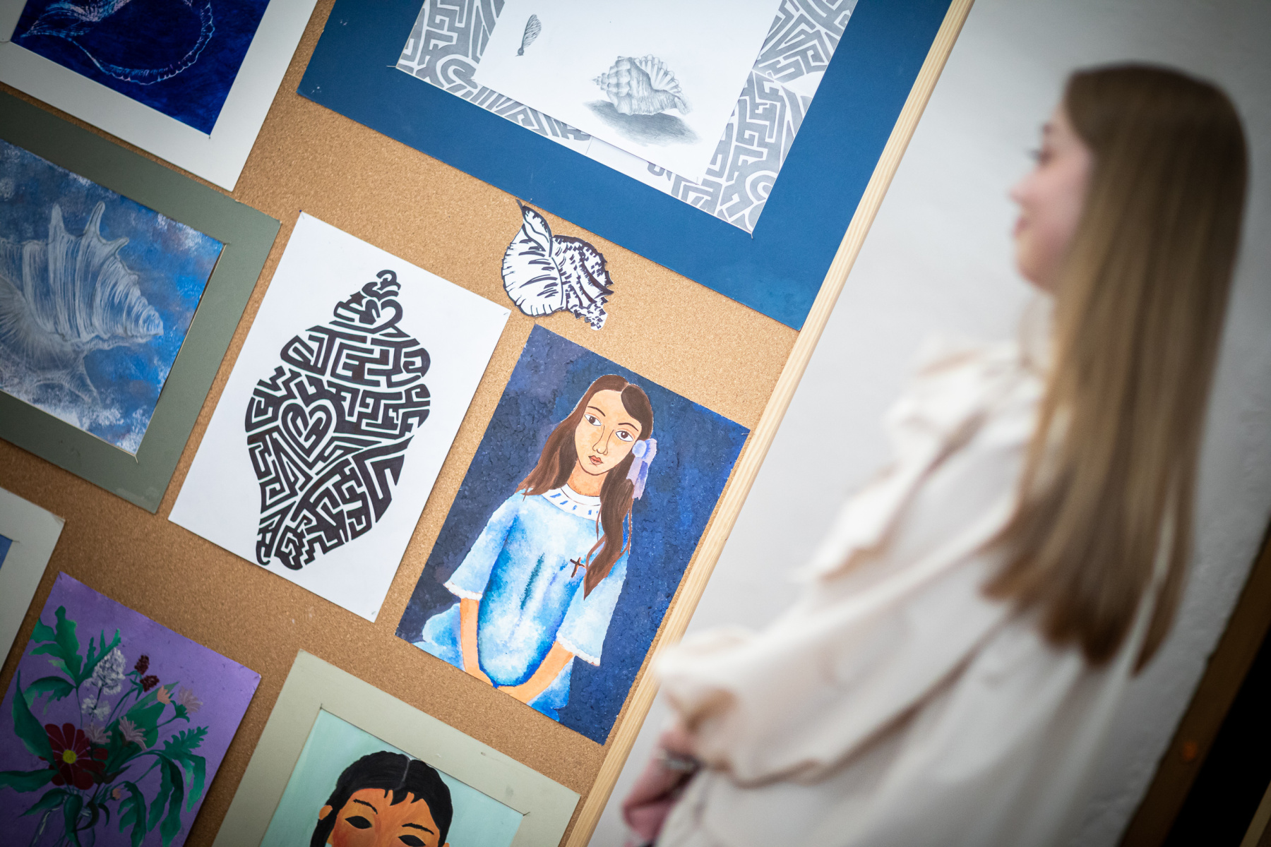 Barbora Klátiková (4. roč. II. stup.)  sa vo svojich ženských portrétoch na veľkých formátoch inšpirovala secesiou a priniesla neobviklé farebné kombinácie.