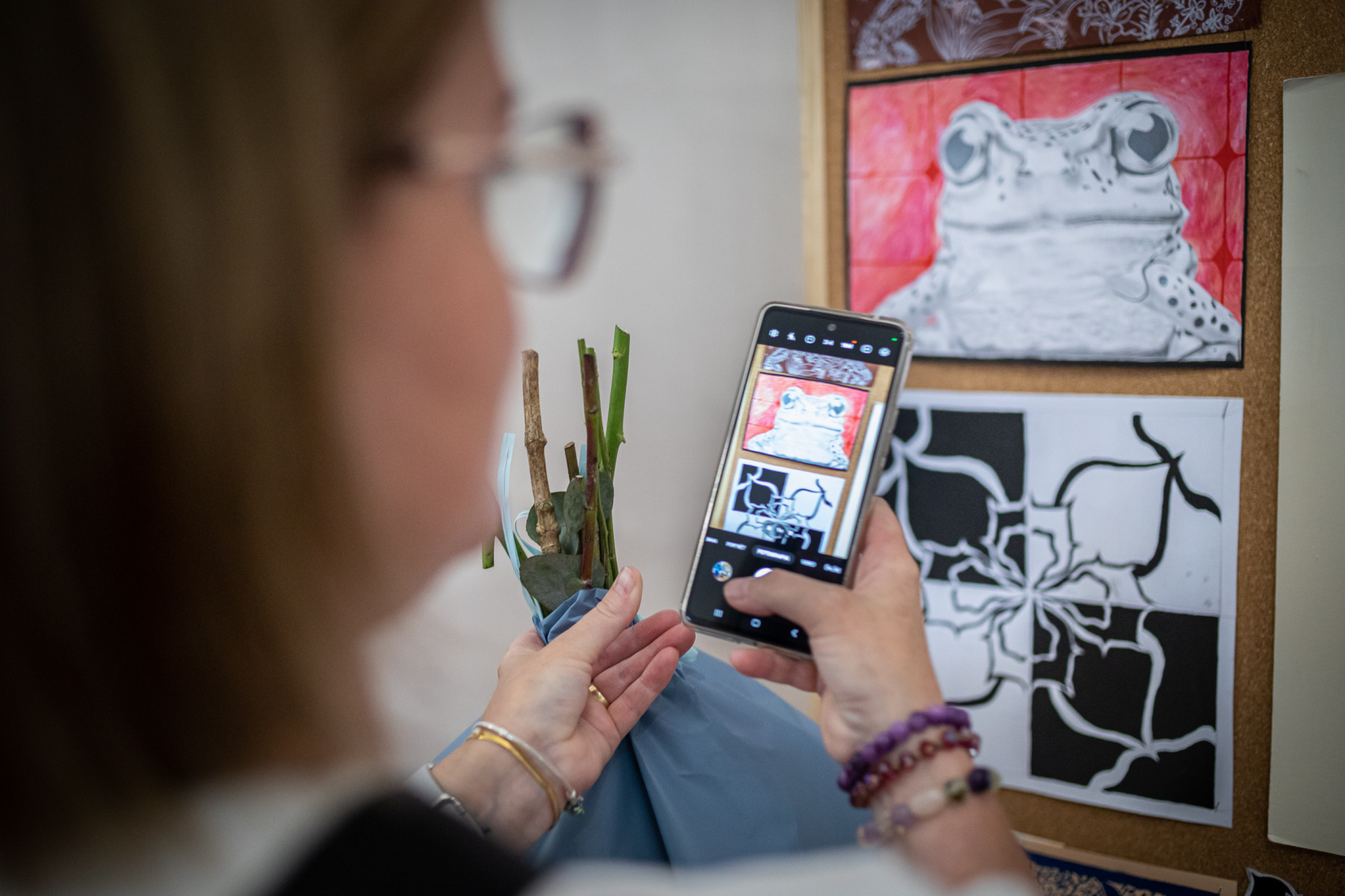 „Kvety“ inšpirovali Elišku Pivarčiovú v jej prácach – ostré tŕne a zároveň jemnosť ruže , jednoduchá krása lúčnych kvetov, exotické kvetiny.