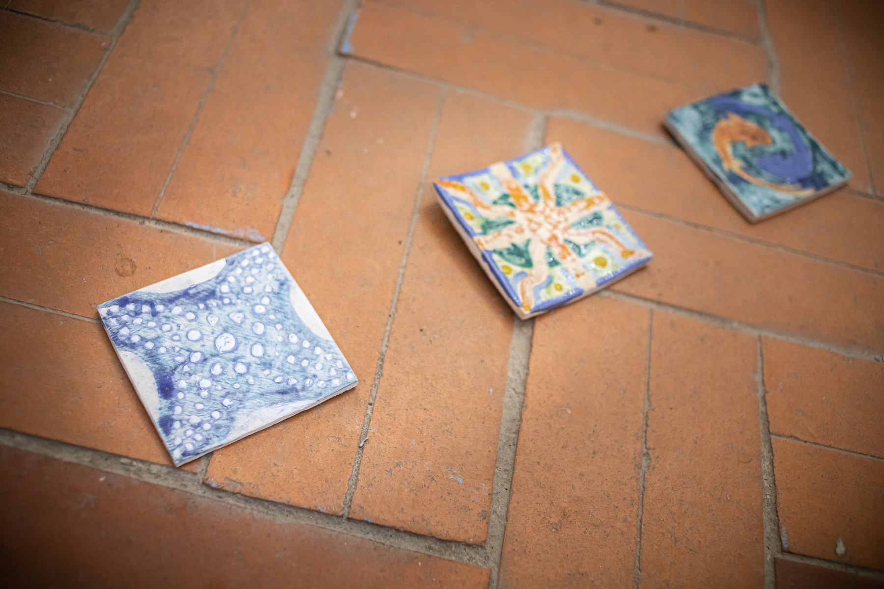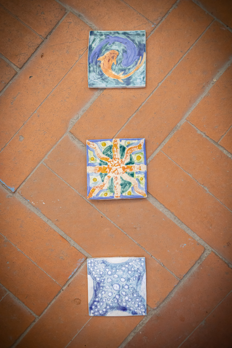 Zoe Stračinová  nakreslila, namaľovala , z textilu navrhla a aj v keramickej peci vypálila  farebne hravé  „Kachličky“  inšpirované prírodou.