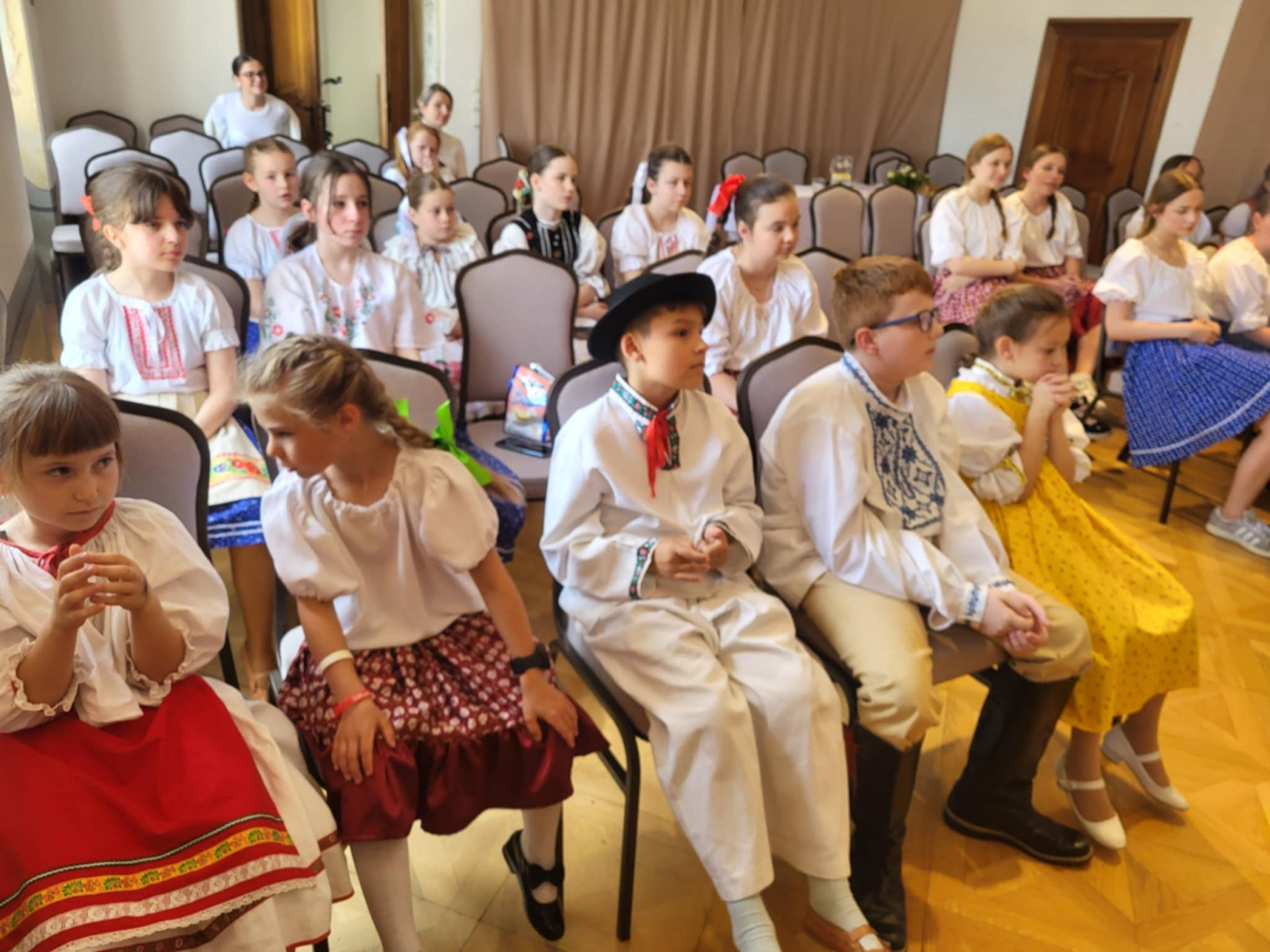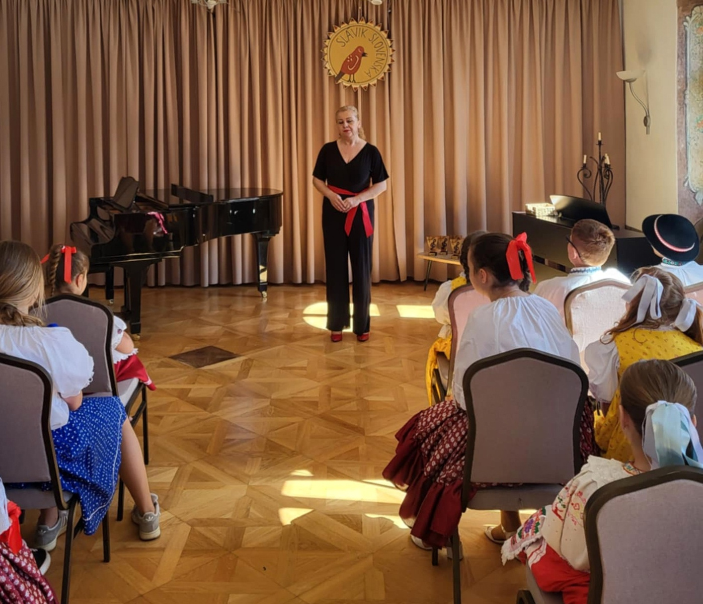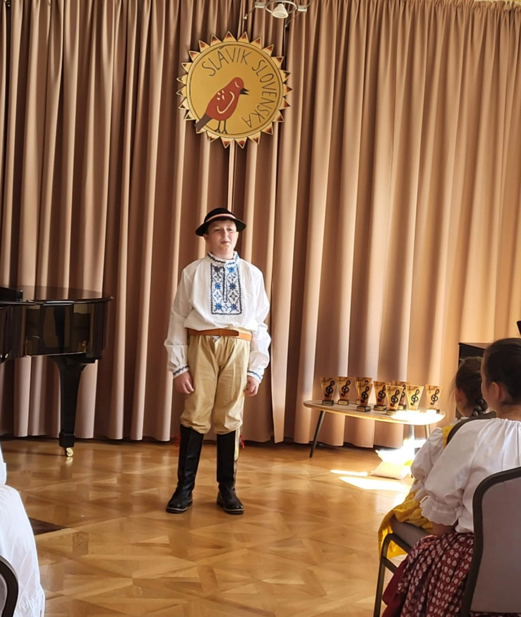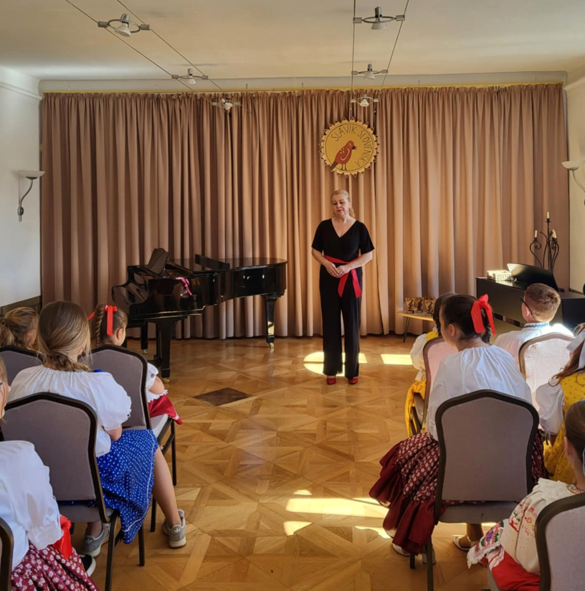V piatok 16. mája privítala v koncertnej sále ZUŠ p. riaditeľka ZUŠ Irena Chovanová žiakov ZŠ a ZUŠ na okresnom kole speváckej súťaže Slávik Slovenska 2025. Urobila tak z poverenia p. riaditeľky Centra voľného času pani Janky Machilovej, ktorá sa nemohla súťaže zúčastniť zo zdravotných dôvodov. Tento už 33. ročník súťaže dáva vyniknúť kráse slovenskej ľudovej piesne. Podmienkou je, aby deti v troch kategóriách spievali jednu povinnú pieseň zo spevníka SS a druhú si zvolia ľubovoľne. Jednu z nich musia zvládnuť a capella /bez sprievodu hudobného nástroja/ a druhú spievajú so sprievodom. Po mnohé roky pripravujú na „Slávika“ deti obetaví páni učitelia. Deti sa oblečú do krojov, rozospievajú a navzájom obohatia svojimi výkonmi. Okresného kola sa v tomto roku zúčastnili žiaľ len 4 školy banskoštiavnického okresu (možno i kvôli náročnosti súťaže). Zo ZŠ Jozefa Kollára deti pripravil a zároveň v porote hodnotil p. riaditeľ Ján Kružlic, zo KSŠ sv. Františka Assiského p. uč. Helena Chovanová, zo ZŠ Jozefa Horáka p. uč. Adriana Kružlicová, za ZUŠ p. riaditeľka Irena Chovanová. V I. kategórii (1.