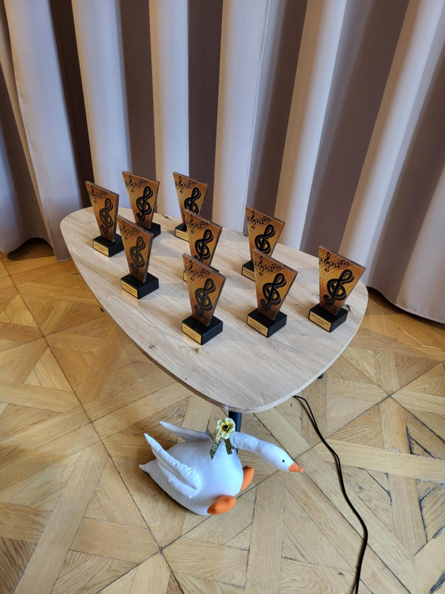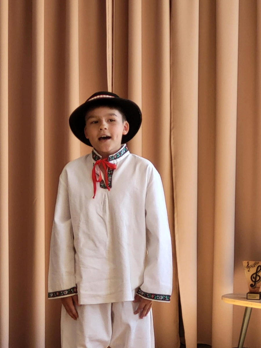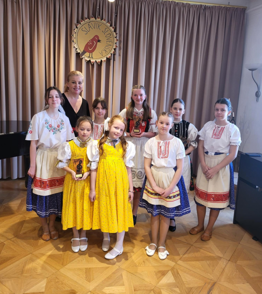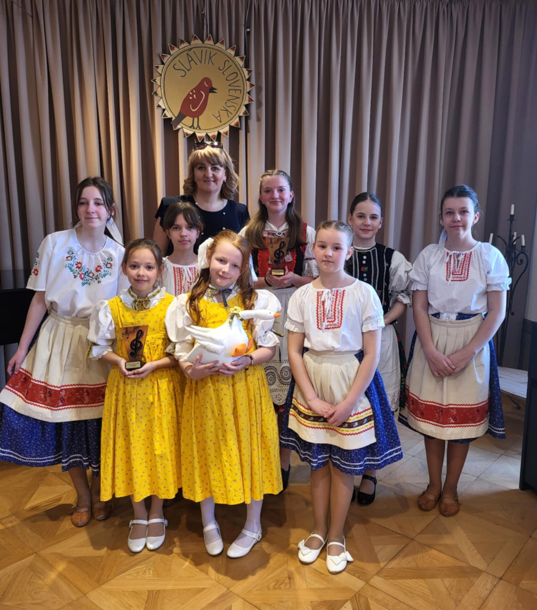 Ocenení si odniesli pekné trofeje a veríme i povzbudenie do ďalšieho spevu. Pri vyhodnotení sme ocenili výkony všetkých, ktorí sa zúčastnili, prekonali trému a vložili do piesní celé svoje srdiečko. Podujatie svojim precíteným spevom obohatila Danielka Kminiaková piesňami Veje vietor po doline a Dobrý večer šuhajova mamička. Danielka je absolventkou ZUŠ BŠ, držiteľkou Ceny Petra Dvorského v tejto súťaži z roku 2017, dnes členkou najprestížnejšieho profesionálneho slovenského ľudového umeleckého kolektívu SĽUK (nedávno sa dostala do speváckej zložky SĽUKu medzi tri najlepšie speváčky v konkurencii 30 záujemcov). Ľudové piesne sú nevyčerpateľnou studnicou krásy a vo svojej rôznorodosti a špecifikách jednotlivých folklórnych regiónov nám odovzdávajú i kus životnej múdrosti. „AKÝ CHLIEB SI NAPEČIEME, TAKÝ JESŤ BUDEME“ sme spievali po vyhodnotení v piesni Zelený je rozmarínček. Venovali sme ju p. uč. Jankovi k jeho narodeninám a tie slová posielame symbolicky na celé Slovensko. Víťazkám každej kategórie Hanke, Chloe a Izabele gratulujeme a na krajskom kole súťaže SS v Cinobani držíme palce.