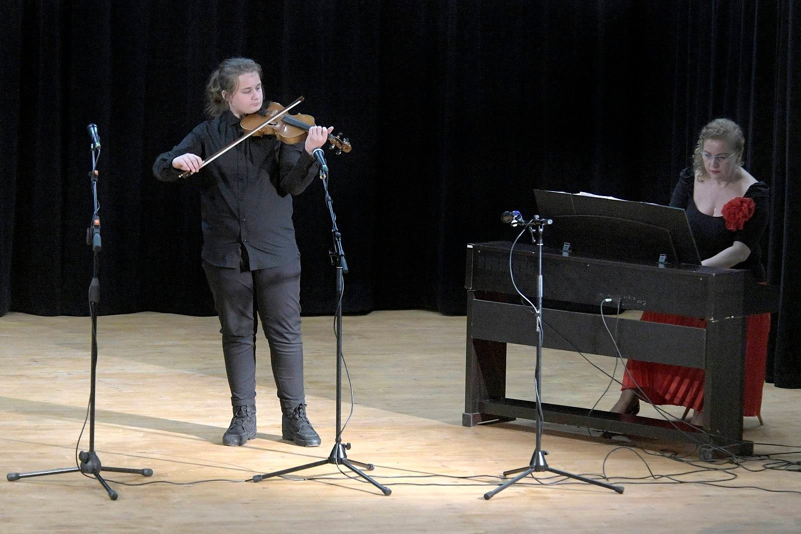 Za ZUŠ Banská Štiavnica dnes podvečer vo Sv. Antone zaspievala pieseň Sláviček je malý vtáčik Bianka Vasiľová (z triedy p. riad. Ireny Chovanovej) , 2.časť Adagio Concertina D-dur Oskara Riedinga zahral na husliach Peter Sopko (z husľovej triedy p. uč. Juraja Janiczeka). Prítomných svojím umením potešili viacerí šikovní hudobníci, speváci i tanečníci, s klavírnou korepetíciou zo ZUŠ prispel k peknému podujatiu i Stanislav Bartko. Za pozvanie ďakujeme p. starosta Martin Kminiak