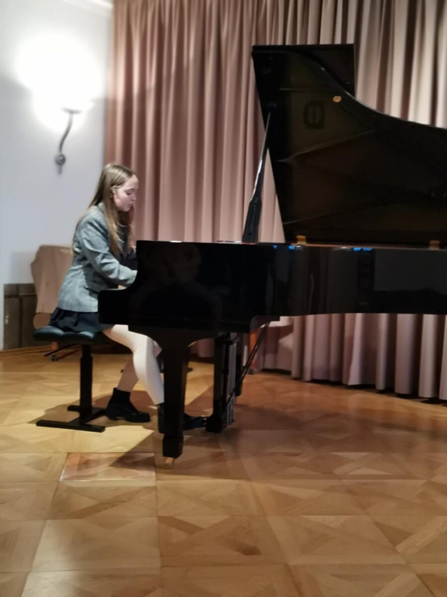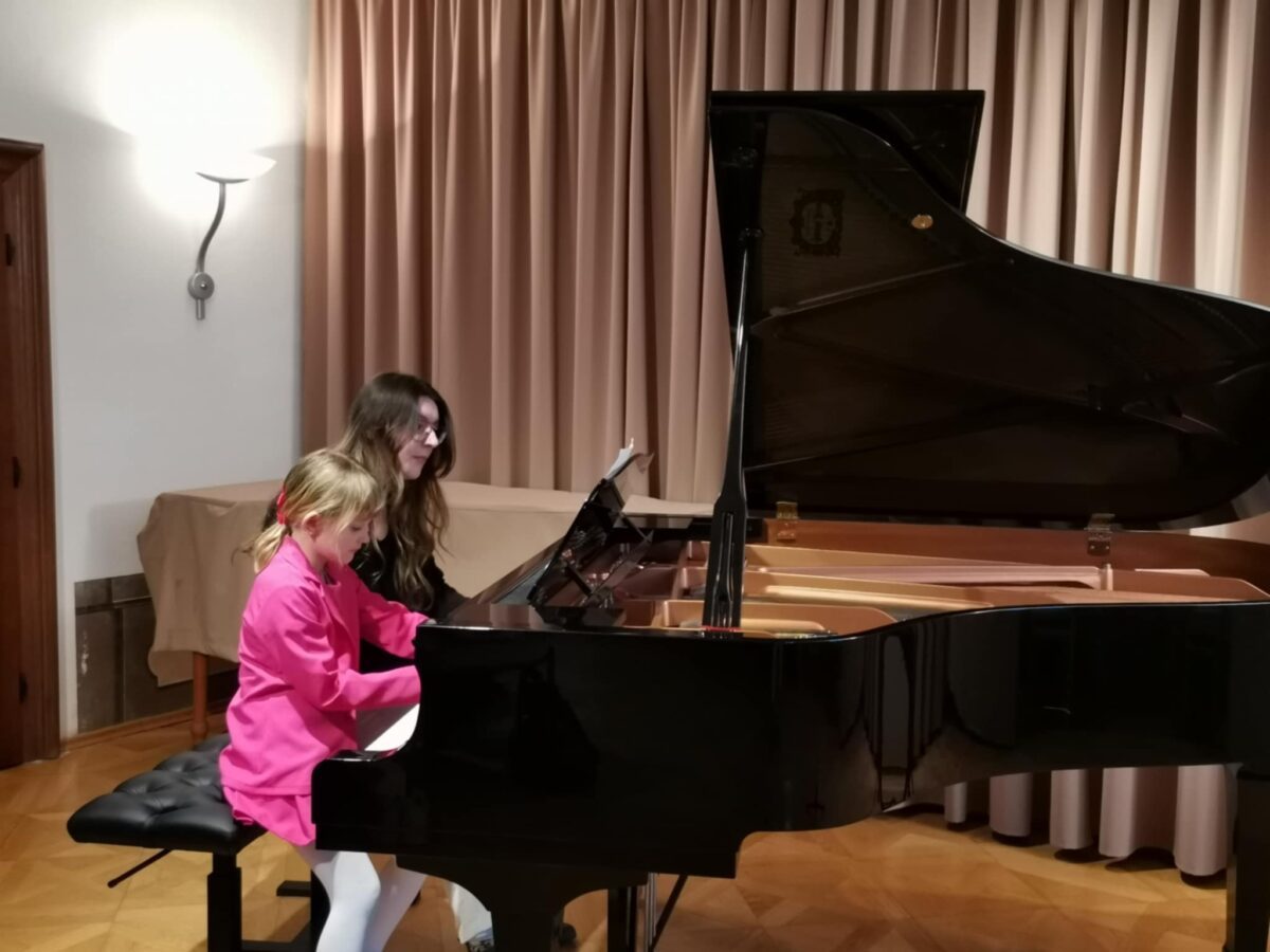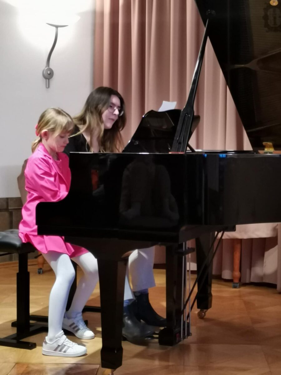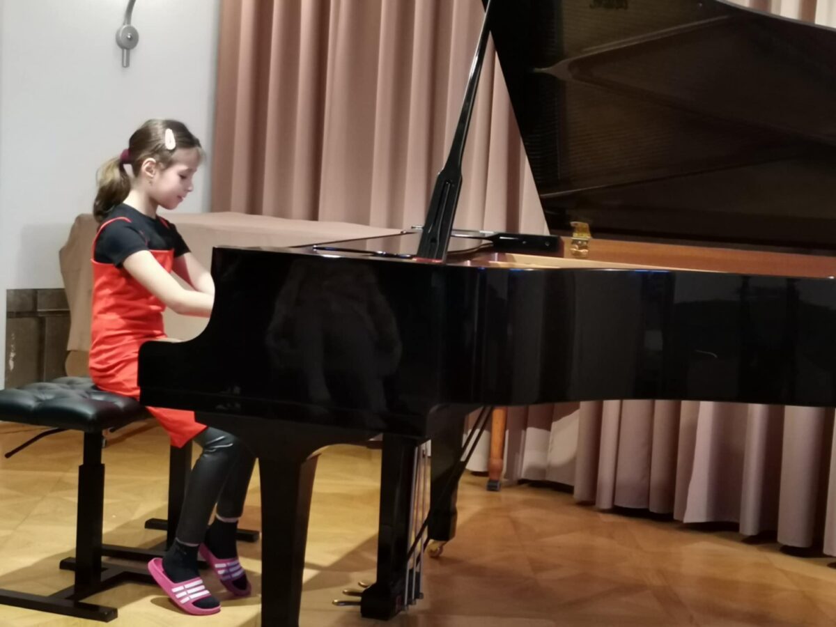 Pred svojimi rodičmi i priateľmi zahrali vo štvrtok 19. februára popoludní skladbičky rôzneho charakteru a štýlu žiaci dvoch klavírnych tried. Do krásy klavírnej literatúry nám pomohli nazrieť žiaci z triedy p. uč. Gregora Zubeka: Edita Petrášová, Ema Medňanská, Mária Žilková, Nela Olíková, Ester Juhás, Zuzana Zubeková. Štvorručnou skladbou sa prezentovali Teodor Bačík a Gabriel Vagač. Z triedy p. uč. Tatiany Šustekovej to boli mladé klaviristky: Antónia Gábrišová, Sofia Mária Debnárová, Lívia Pohančániková, Soňa Jarábeková, Nina Liptáková, Noemi Imrišková, Dominika Vazanová, Anna Urbanová a Daniela Marková. Primerane veku i skúsenostiam potešili prítomných krásnymi výkonmi v skladbách Debussyho, Janáčka, Chopina, Mozarta, Suchoňa, Schumana, Bacha, Bonis, Štefáneka, Satie, či Šostakoviča. Osviežením klavírnych vystúpení boli tri spevácke čísla. Zuzanka Zacharová (Spievaj že si spievaj) a žiaci LDO Lilian Šavoltová (Čerešne), Boris Volčko (Balada o poľných vtákoch). Obaja naši „herci, recitátori a moderátori“  sa pripravujú sa na talentové skúšky na konzervatórium v odbore hudobno-dramatickom, kde sa vyžaduje aj spev. Všetci žiaci prekonávajú svoje limity,  trému na javisku,  učia sa skladby a piesne čo najvernejšie interpretovať. To ako správne zvládnuť technické i výrazové prostriedky ich na hodinách učia p. učitelia. Ďalšou fázou je dôkladná domáca príprava.  Čo bolo potešujúce a povzbudivé, že u všetkých bolo cítiť veľkú snahu a u starších žiakov i istý stupeň zrelosti, ale predovšetkým lásku k hudbe.