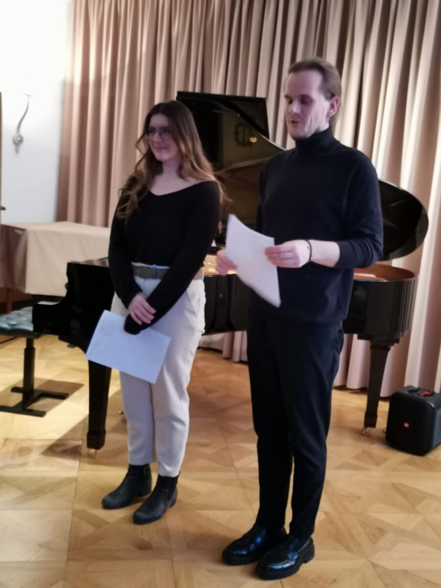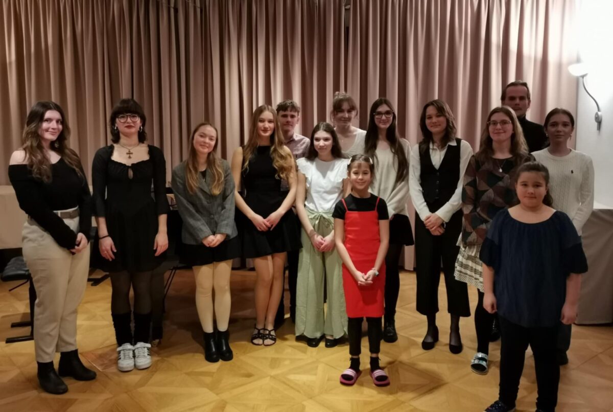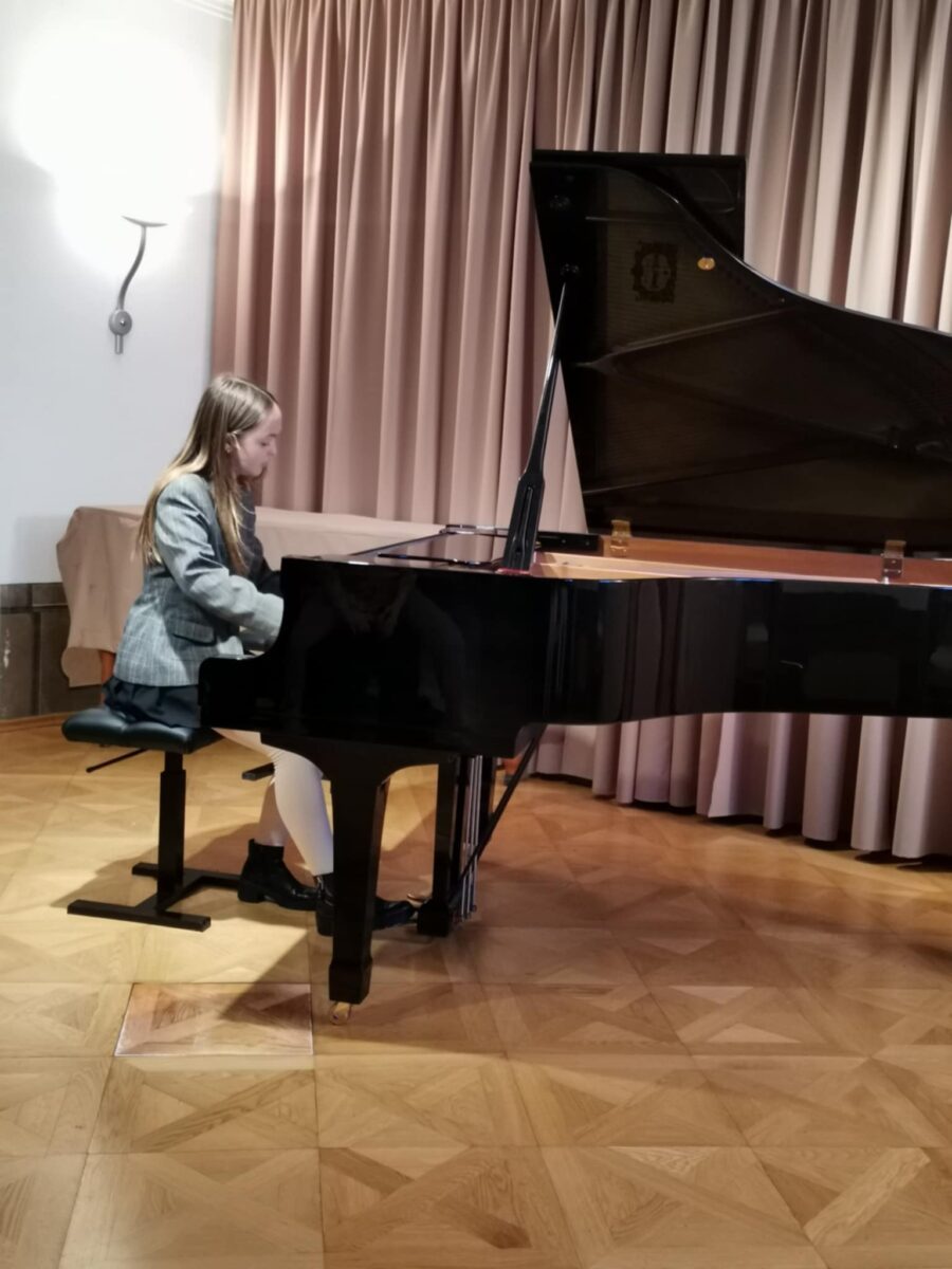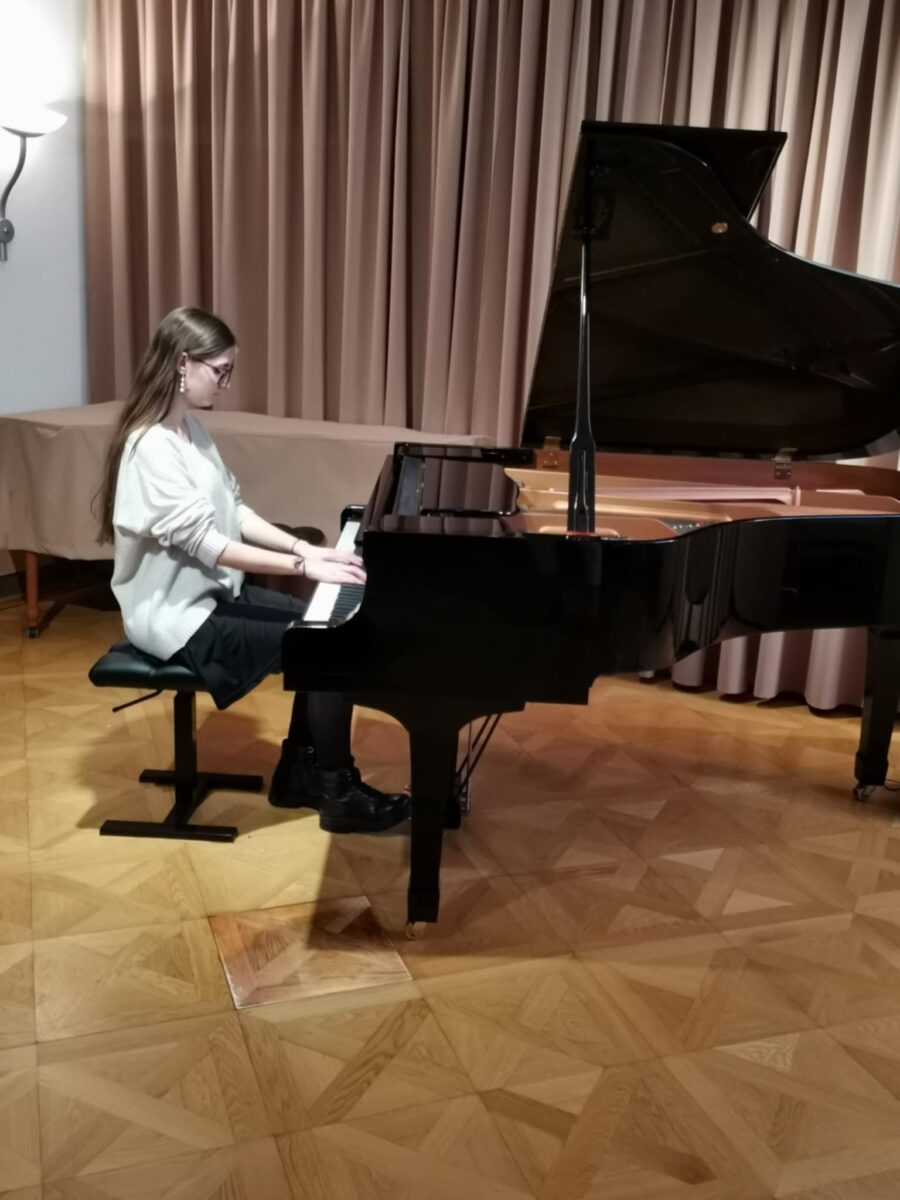 Pred svojimi rodičmi i priateľmi zahrali vo štvrtok 19. februára popoludní skladbičky rôzneho charakteru a štýlu žiaci dvoch klavírnych tried. Do krásy klavírnej literatúry nám pomohli nazrieť žiaci z triedy p. uč. Gregora Zubeka: Edita Petrášová, Ema Medňanská, Mária Žilková, Nela Olíková, Ester Juhás, Zuzana Zubeková. Štvorručnou skladbou sa prezentovali Teodor Bačík a Gabriel Vagač. Z triedy p. uč. Tatiany Šustekovej to boli mladé klaviristky: Antónia Gábrišová, Sofia Mária Debnárová, Lívia Pohančániková, Soňa Jarábeková, Nina Liptáková, Noemi Imrišková, Dominika Vazanová, Anna Urbanová a Daniela Marková. Primerane veku i skúsenostiam potešili prítomných krásnymi výkonmi v skladbách Debussyho, Janáčka, Chopina, Mozarta, Suchoňa, Schumana, Bacha, Bonis, Štefáneka, Satie, či Šostakoviča. Osviežením klavírnych vystúpení boli tri spevácke čísla. Zuzanka Zacharová (Spievaj že si spievaj) a žiaci LDO Lilian Šavoltová (Čerešne), Boris Volčko (Balada o poľných vtákoch). Obaja naši „herci, recitátori a moderátori“  sa pripravujú sa na talentové skúšky na konzervatórium v odbore hudobno-dramatickom, kde sa vyžaduje aj spev. Všetci žiaci prekonávajú svoje limity,  trému na javisku,  učia sa skladby a piesne čo najvernejšie interpretovať. To ako správne zvládnuť technické i výrazové prostriedky ich na hodinách učia p. učitelia. Ďalšou fázou je dôkladná domáca príprava.  Čo bolo potešujúce a povzbudivé, že u všetkých bolo cítiť veľkú snahu a u starších žiakov i istý stupeň zrelosti, ale predovšetkým lásku k hudbe.