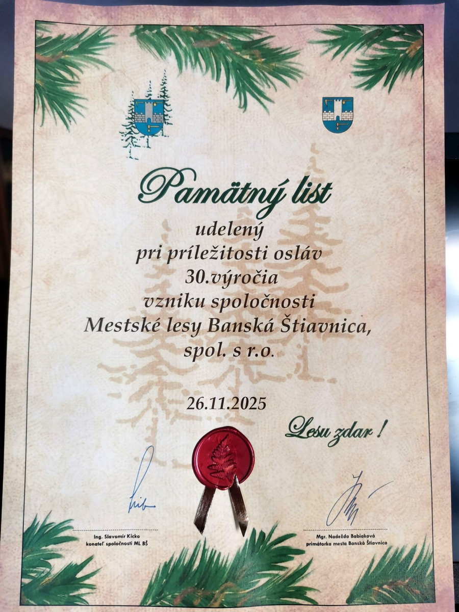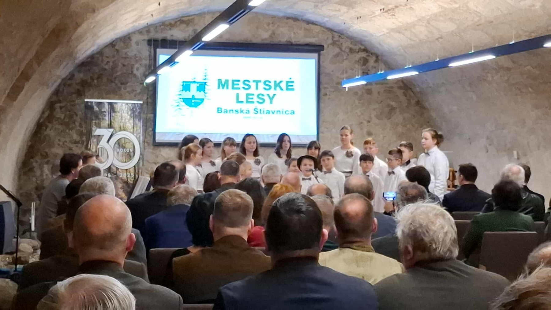 v stredu 26. novembra 2025 sme piesňami vzali hold horárom, hore, lesu, lesníkom, všetkým, ktorí sa s láskou starajú o zver, o rastliny a stromy, ktorí svojou prácou zveľaďujú, učia i vychovávajú k väčšej úcte k prírode a stvorenstvu. V troch blokoch sólo speváci i členovia Zboríku pohladili srdcia vzácnych hostí na oslave 30. výročia založenia Mestských lesov v Banskej Štiavnici piesňami ako Horenka, horenka; Horí hora; Hora horička; V hlbokej doline; Horou; Do hory ma poslali, Robila ja pri horároch, Za tú horu za vysokú. Nechýbala Duchoňom preslávená Slovenských dolinách, či lesnícka hymna Tak ako švárna dievčina, ako i horármi obľúbená Vyleteli jarabice z vrbiny. Zazneli i husličky a klavír, na záver trojhlasne pieseň Hora. Ďakujeme za pozvanie a dôveru p. riaditeľovi Slavomírovi Kickovi , Monike Maňkovskej za prípravu priestorov pre Zborík, švagrovi Jurajovi Lulákovi a pestovateľovi Ervínovi Kissovi za prevoz klavíra, zuškárskym mamičkám za pomoc s deťmi, p. uč. Matúš Piatrov za kachon. Mali sme i skvelé publikum a teda ešte veľa krásnych rokov v hore a s horou prajeme našim Mestským lesom.