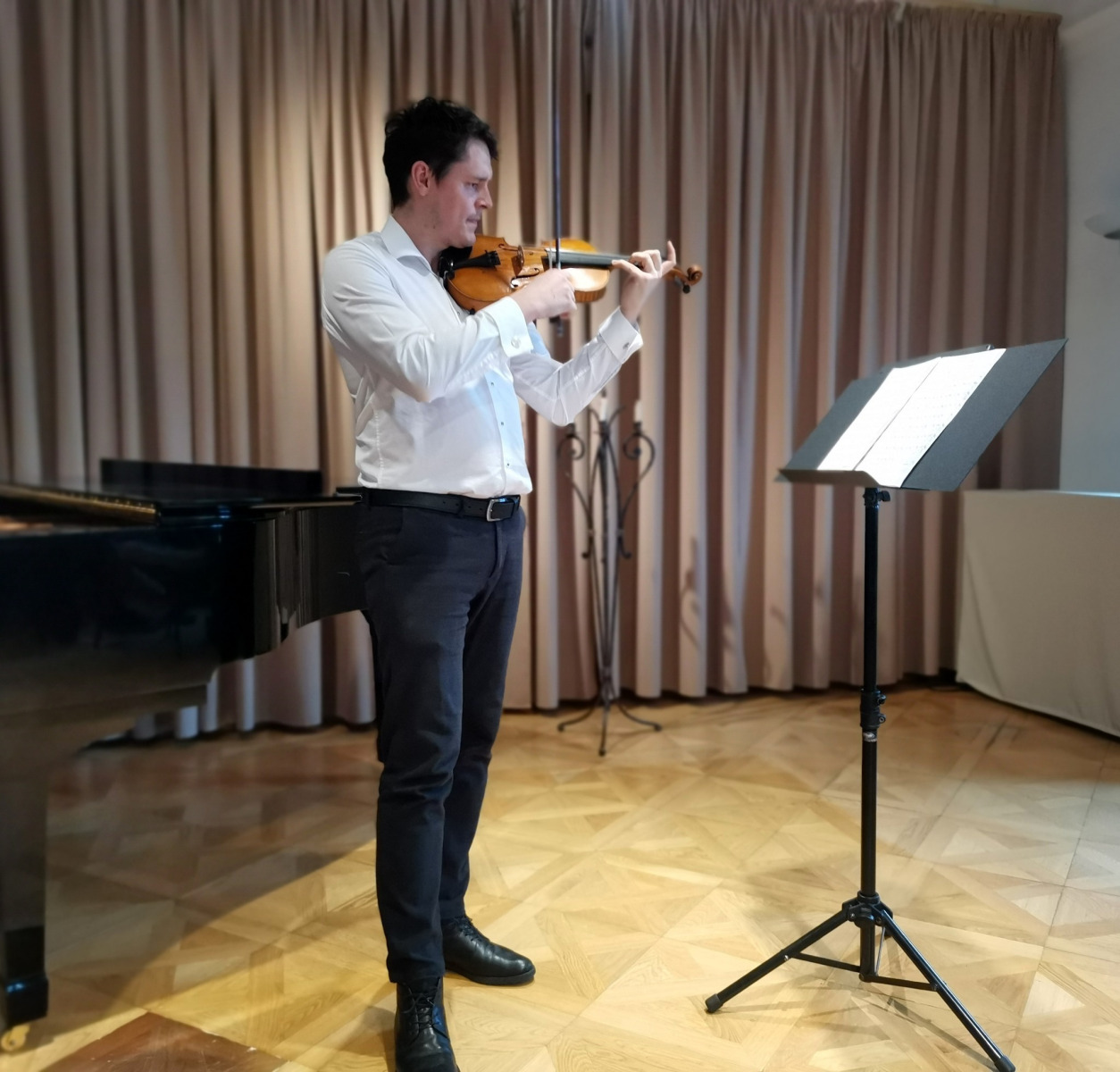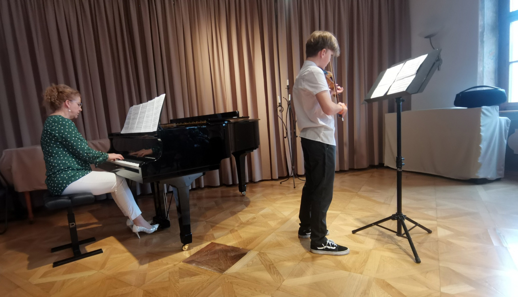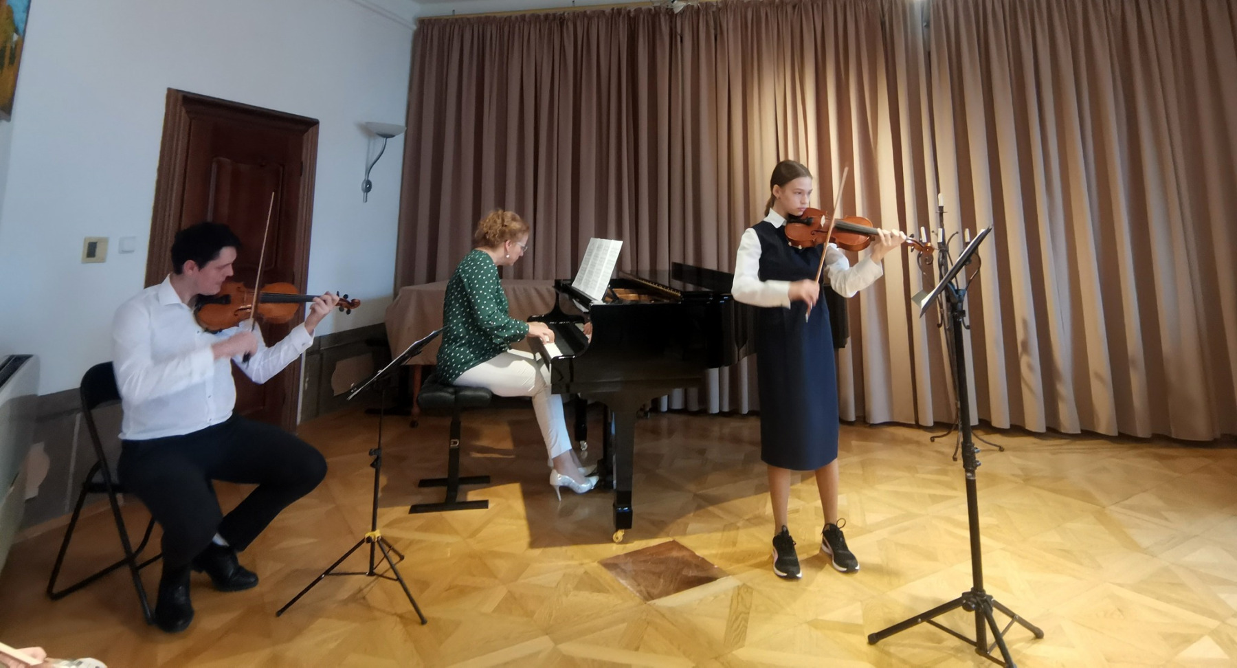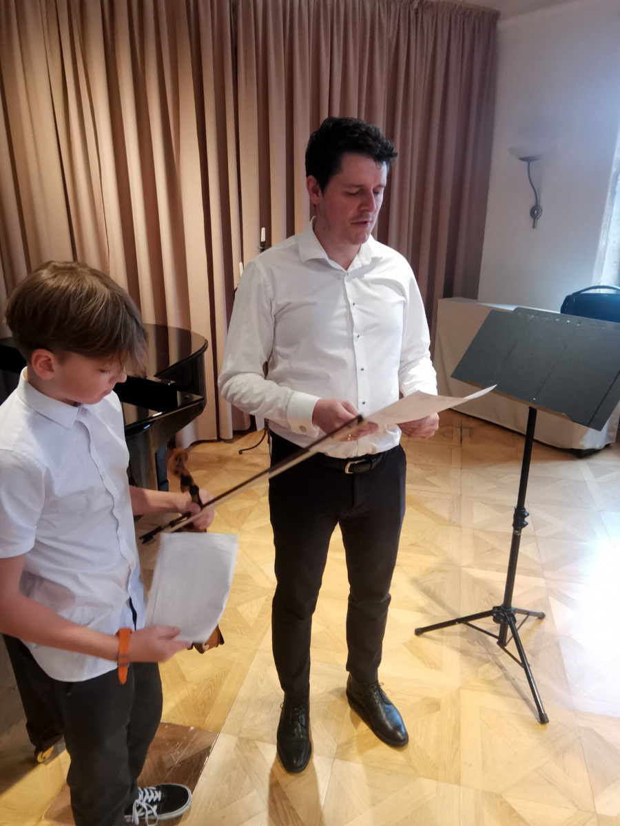 2. apríla sa konal v sále ZUŠ krásny, miestami až dojímavý koncert starších žiakov husľovej triedy. Je radostné vidieť i počuť ako žiaci pod rukami p. učiteľa Juraja napredujú. Samuel Sebastian Bihari, Ruben O Connor, Michaela Černáková, Veronika Ivaničová, Peter Sopko i Ľuboslava Kuchtová zahrali koncerty i concertina Riedinga, Kúchlera, či Vivaldiho. Všetci sa výrazovo i technicky zlepšili i vďaka vzoru, krorý majú vo svojom nadanom a pre hudbu a hru na husle zapálenom pánovi učiteľovi Jurajovi Janiczekovi. Ten v závere koncertu prítomných rodičov potešil a svojich snaživých žiakov motivoval interpretáciou náročného koncertu Charlesa Auguste de Bériota Scéne de ballet. Korepetíciami prispeli Mariia Zanko a Irena Chovanová. Bravo deti, bravo pán učiteľ.