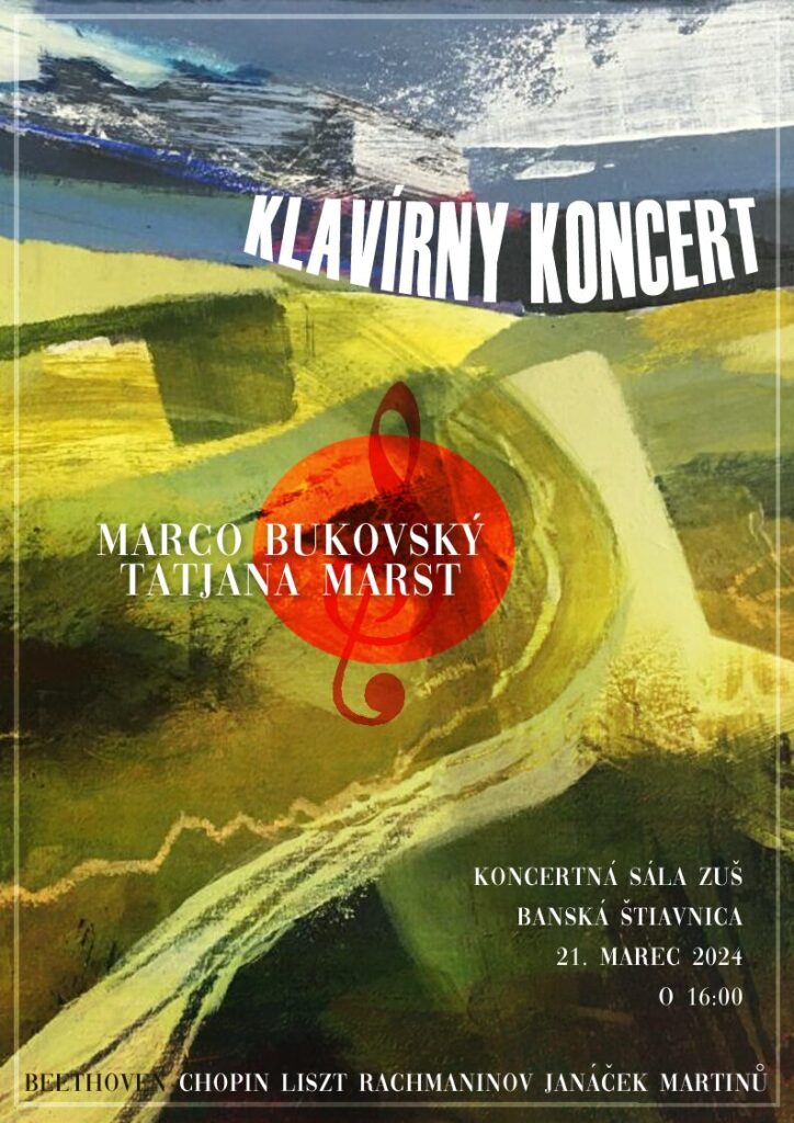 Nenechajte si ujsť klavírny recitál pani učiteľky Tatiany Šustekovej a jej hosťa Marca Bukovského.