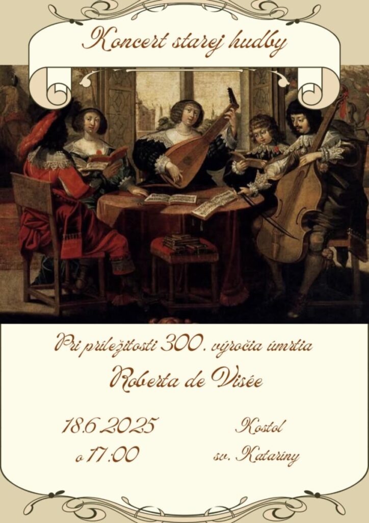 18. júna 2025 sa v Kostole svätej Kataríny konal Koncert starej hudby venovaný 300. výročiu úmrtia skladateľa, lutnistu a gitaristu Roberta de Visée. Zazneli skladby od samotného de Visée a iných barokových skladateľov ako G.F.Händel či A. Vivaldi. Okrem žiakov a pedagógov, gitarového orchestra či flautového súboru našej banskoštiavnickej ZUŠ sa predstavili aj pani učiteľka Lívia Posadková Krátka (čembalo) a jej dcéra Anežka Posadková (zobcová flauta) zo ZUŠ Krupina. Programom sprevádzali moderátori Boris Volčko a a Liana Šavoltová z literárno-dramatického odboru. Krásna hudba baroka podporená čembalom, nádhrenými kulisami a prirodzenou akustikou chrámu ponorila nás poslucháčov do rozjímania a nachvíľu sme sa cítili ako v nebi. Vďaka pani učiteľka Karolína Bušková Rumanová, p. uč. Michal Timko, p. uč. Zuzana Kovárová Ladzianska, vďaka RKC Farnosť Banská Štiavnica. Autor fotografií Martin Jánošík.