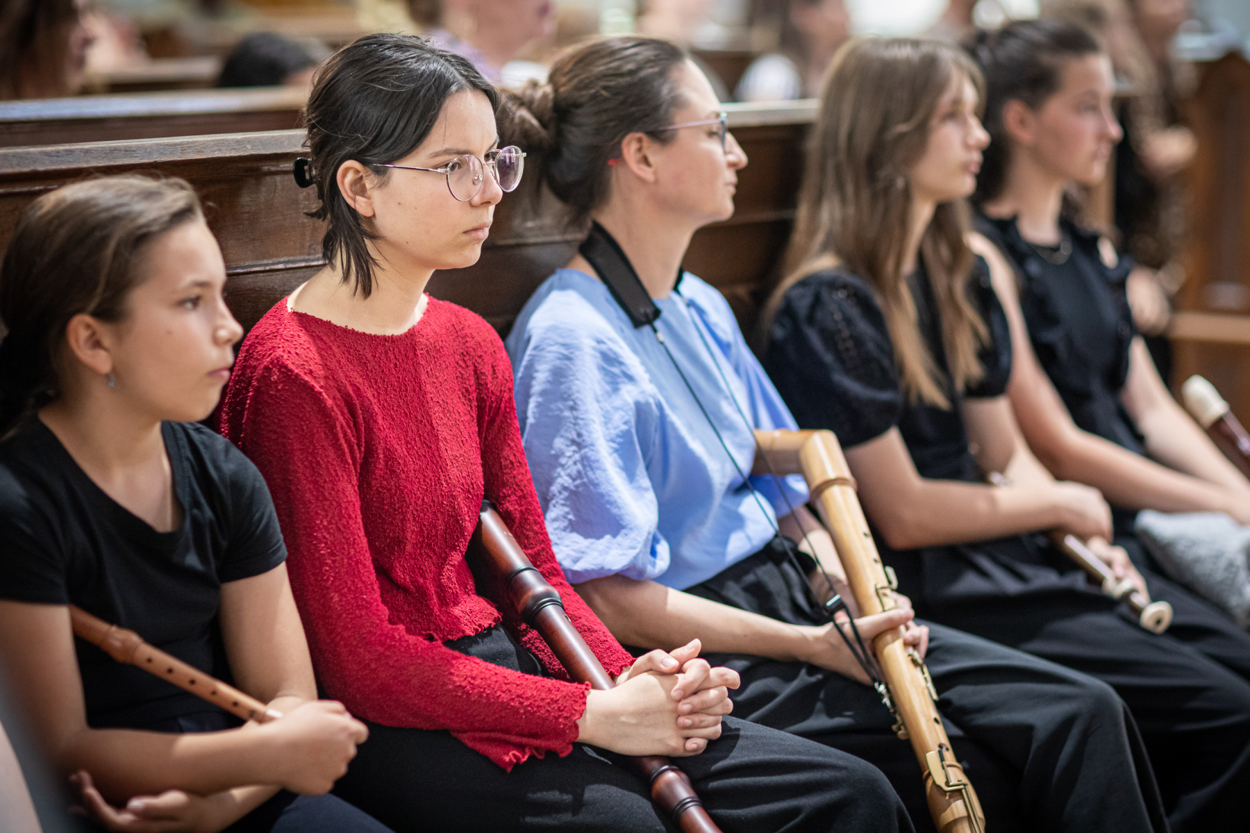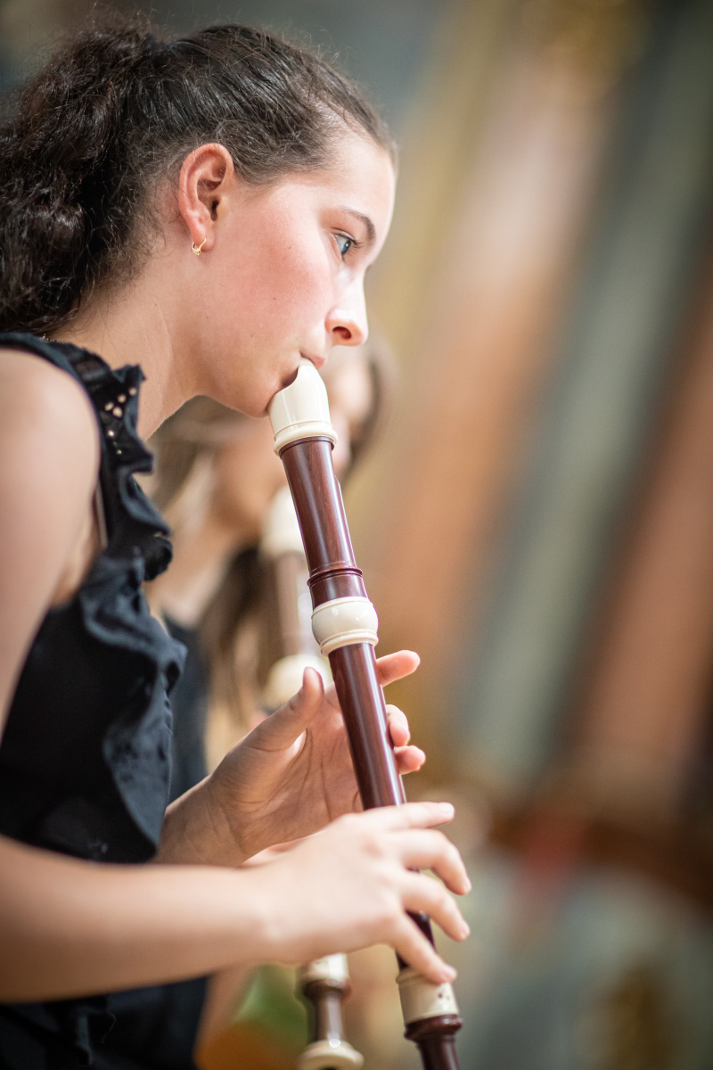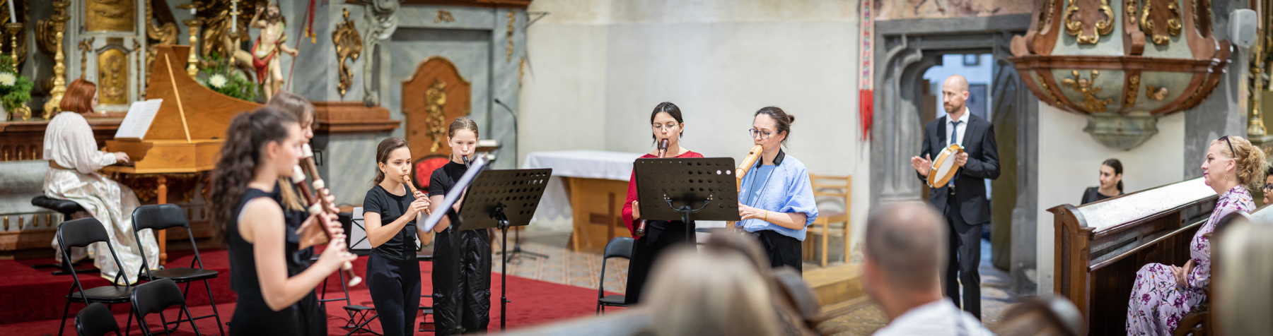 5. Jean Baptiste Lully: Marche pour la Céremonie, Chaconne des Scaramouches – Flautový komorný súbor: Zuzana Kovárová, Karolína Filkorová, Matilda Repáňová, Eliška Bačíková, Hana Kernáčová, Nina Kovárová, Lívia Posádková Krátka (čembalo)