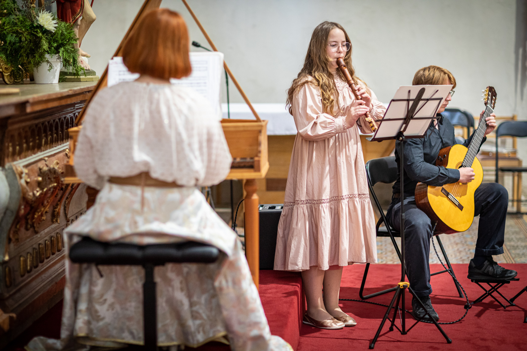7. Robert de Visée: Allemande la Royalle, Courante I., Courante II., Sarabande, Gavotte, Chaconne, Masquerade Rondeau zo suity č7. d mol – Lívia Posádková Krátka (čembalo), Anežka Posádková (altová flauta), Jakub Posádka ( gitara)