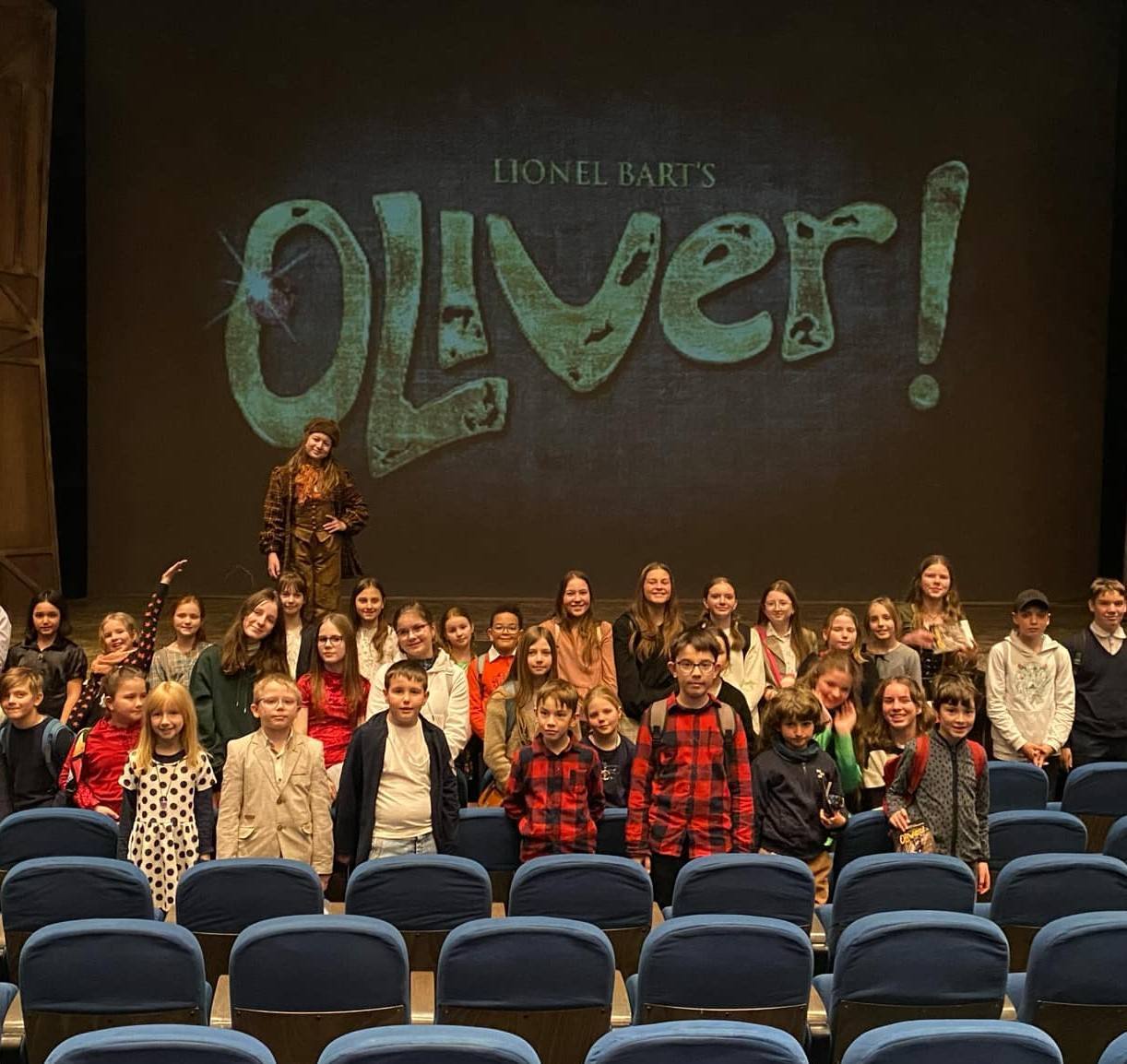 Pre viac ako 50 banskoštiavnických Zuš-károv sme v utorok 8.apríla zorganizovali zájazd na svetoznámy rodinný muzikál Oliver! Slávny román Charlesa Dickensa – Oliver Twist v muzikálovej podobe približuje príbeh chlapca zo sirotinca, ktorý túži po láske a prijatí, a ktorý zažije dobrodružnú cestu zo sirotinca, cez pohrebníctvo až po pouličný gang malých zlodejov, aby napokon našiel domov u svojho nepoznaného starého otca. V tomto predstavení dáva šancu zahviezdiť tej najmladšej generácii hercov i herečiek, ktorí dostávajú veľký priestor prejaviť svoj talent. Jednou z členiek gangu Iskra, ktorej sme po predstavení s radosťou tlieskali, je dcéra našej absolventky Barbory Šaling Legényovej, Sára Šalingová. Za tento skvelo stvárnený silný príbeh detí i dospelých ďakujeme všetkým umelcom Novej scény, za pedagogický dozor p. zástupkyni Miroslave Knezovičovej, Andrejke Halibožekovej, Terézii Beňovej a Ivane Beňovej. Za bezpečný odvoz ďakujeme p. Bosákovi.