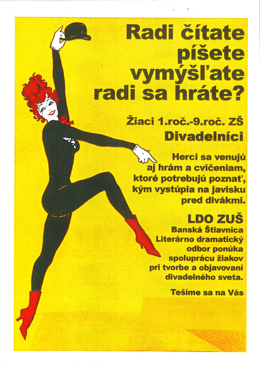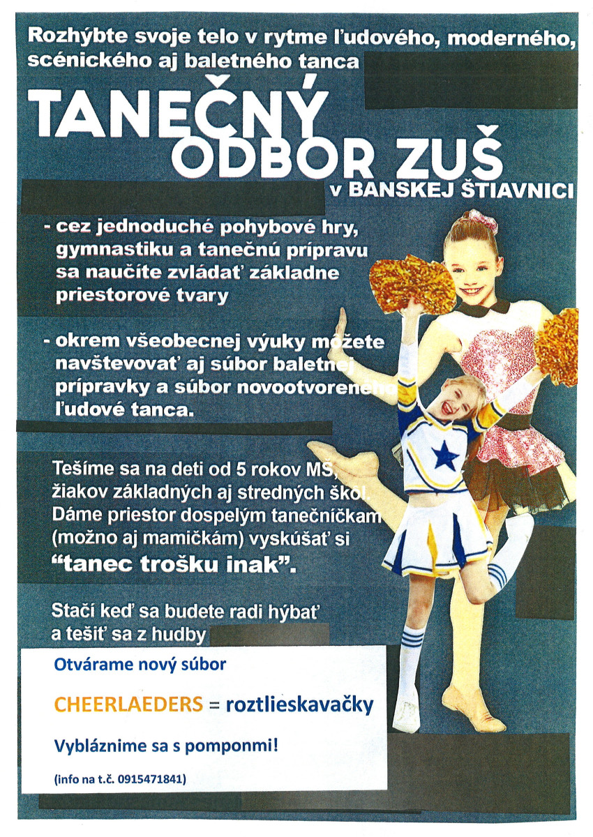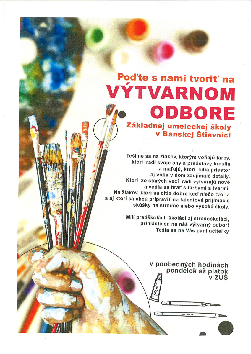 Ešte je možné prihlásiť sa na skupinové odbory, povzbudzujeme deti s pohybovým talentom do TANEČNÉHO ODBORU, deti s hereckými a recitačnými vlohami do LITERÁRNO-DRAMATICKÉHO ODBORU a tí, ktorí radi kreslia,maľujú a tvoria s fantáziou do VÝTVARNÉHO ODBORU.