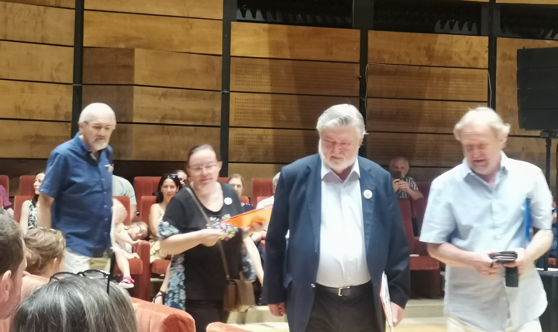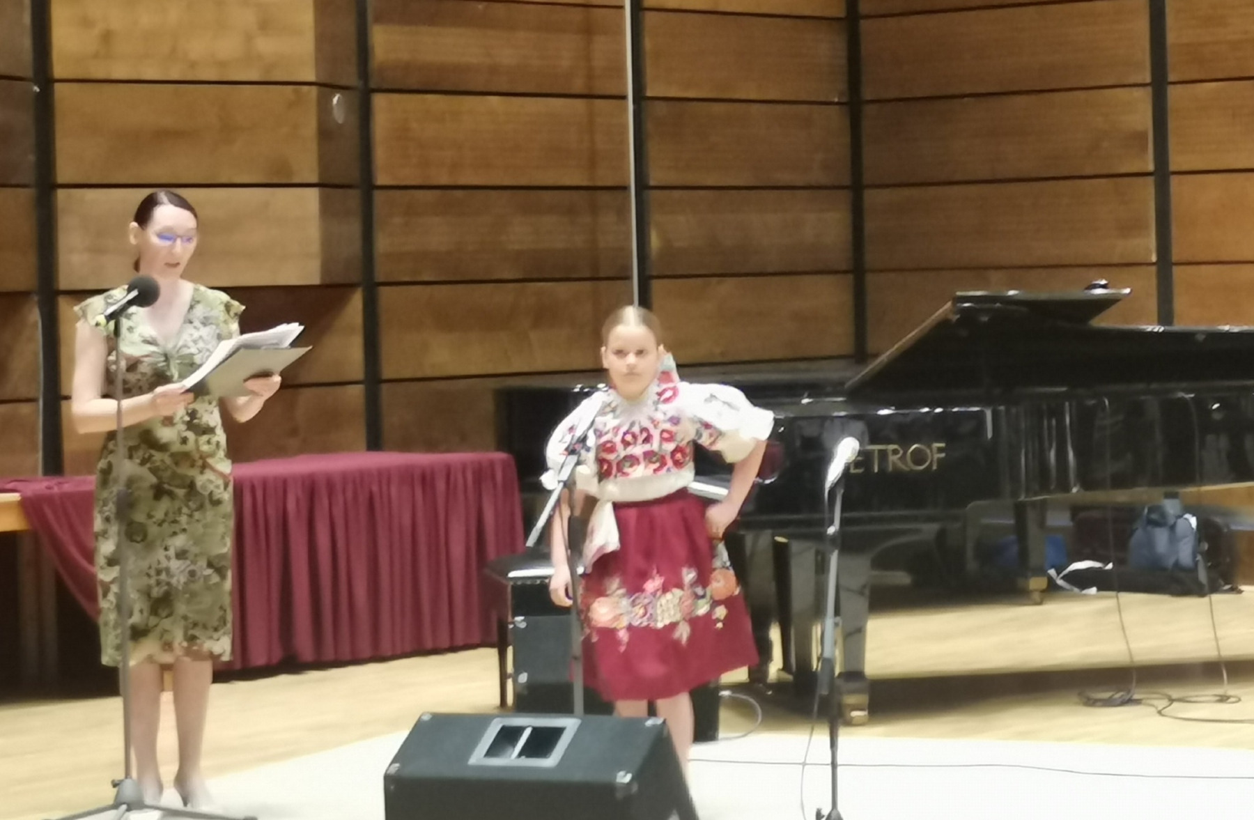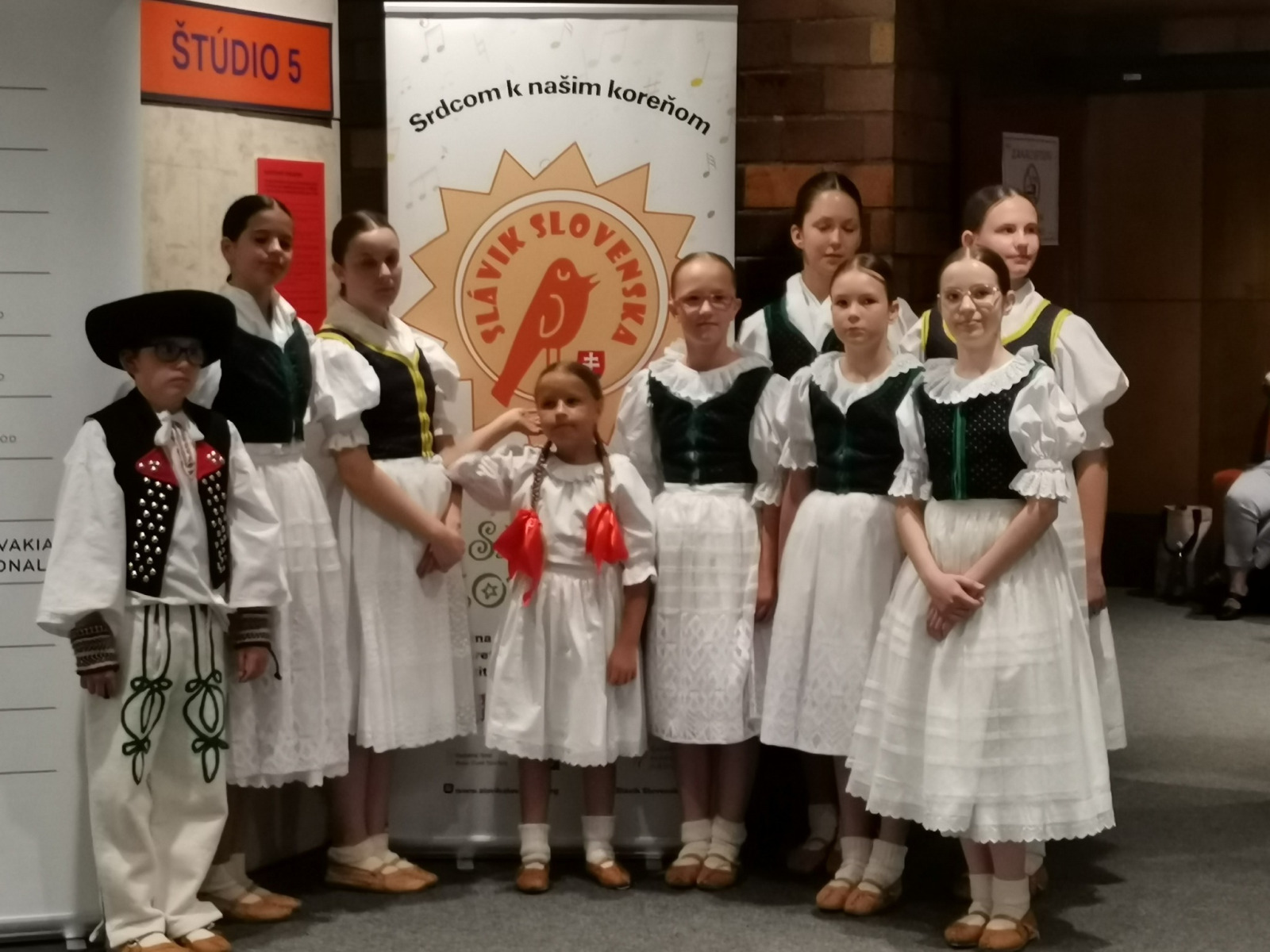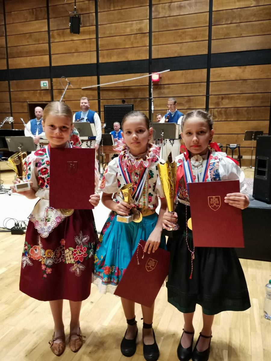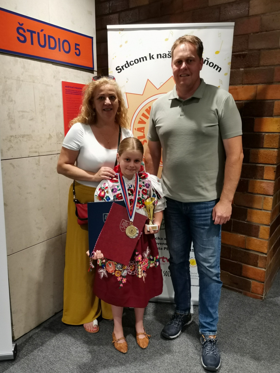 Hanka odetá v kroji z Podhoria zaspievala porote s jej predsedom maestrom Petrom Dvorským dve slovenské ľudové piesne Ta išiev môj milý a A v tom našom dvore. Najlepších spevákov víťazov krajských kôl sprevádzala ľudová muzika Polun. Skvelé výkony, krásne kroje, profesionálna ľudová hudba i moderátorka, veselé i dojímavé piesne z každého kúta Slovenska dnes oblažili naše srdcia. Hankin temperament, rozsah, čistota intonácie, náročný výber, prirodzený pohyb do hudby, zjav, šmnc, úsmev i celkový umelecký dojem primäli porotu k udeleniu STRIEBORNÉHO SLÁVIKA našej Hanke už po druhý krát. GRATULUJEME Hanička a ďakujeme za skvelú reprezentáciu celého banskobystrického kraja, nášho regiónu, mesta, školy. Ockovi Martinovi za odvoz, sestre Danielke za pomoc a podporu.