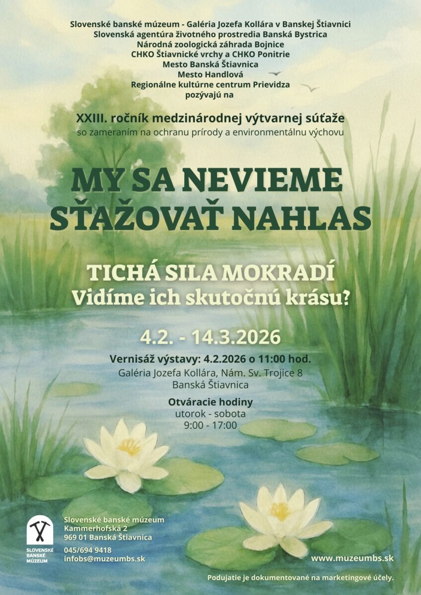 SBM organizovalo výtvarnú súťaž s témou Tichá sila mokradí. Členkou poroty bola aj naša p. zástupkyňa Miroslava Knezovičová. Na vernisáži súťaže 4. februára v Galérii Jozefa Kollára sa kultúrnym programom predstavili žiaci ZUŠ. Pani učiteľka Terezka Beňová pripravila klavírne číslo v podaní Dorotky Draveckej (E. Suchoň Zahrajte mi muzikanti vesele). Spevácke čísla v podaní Mii Boradajkevyčovej (Sniežik, Jedna ruža dve ruže), Viktórie Líškovej (Voda, Štyri nôcky nespala som) a Matúša Durbáka (Mám ja lúčku, Keď som šiel cez pole) sprevádzala klavírom. Žiačka LDO Liana Šavoltová, ktorá sa pripravuje na prijímacie skúšky na konzervatórium na herectvo, sa prezentovala známou piesňou Čerešne. Pripravil a na klavíri sprevádzal Gregor Zubek.