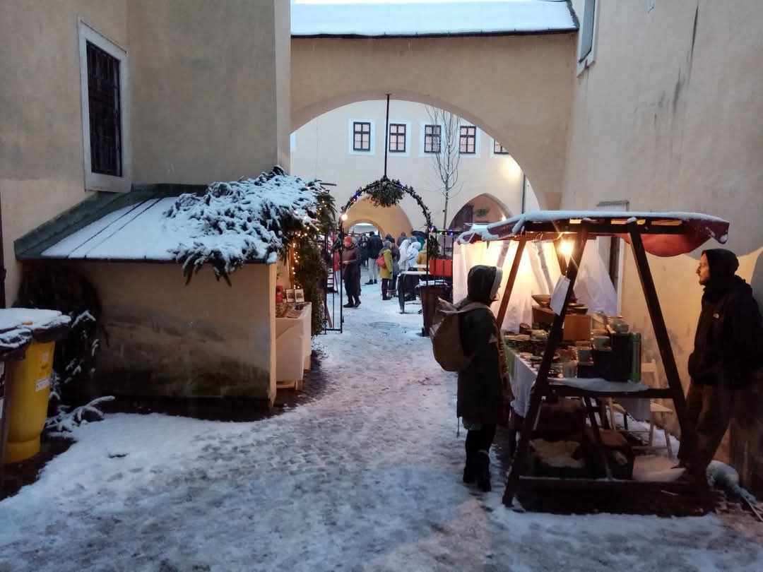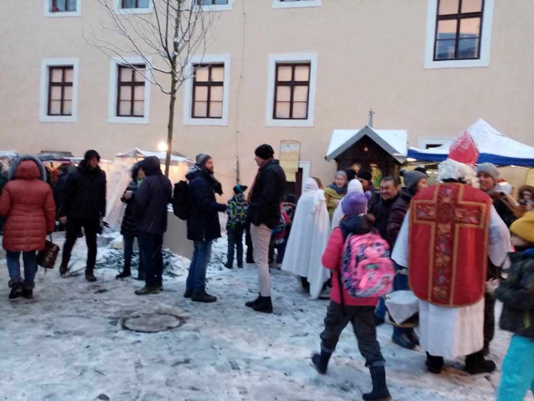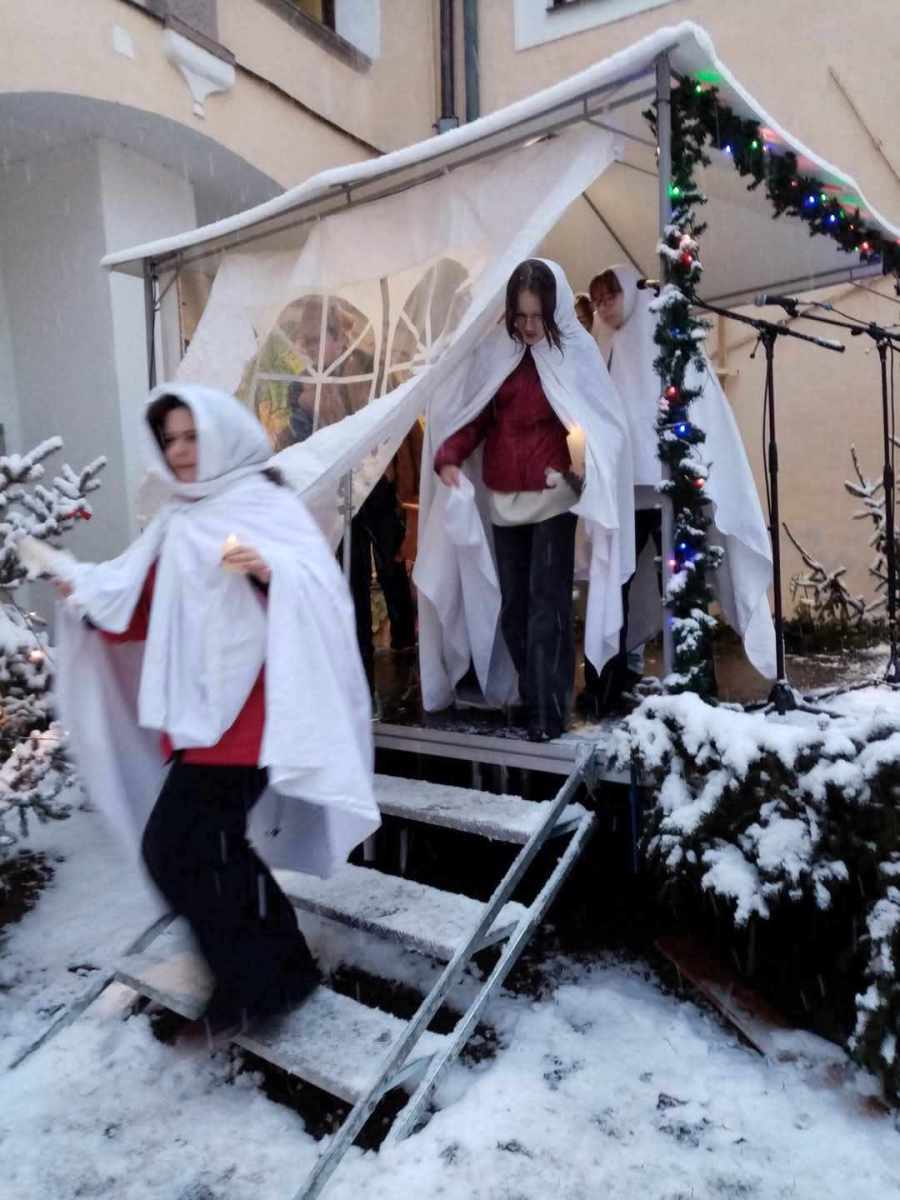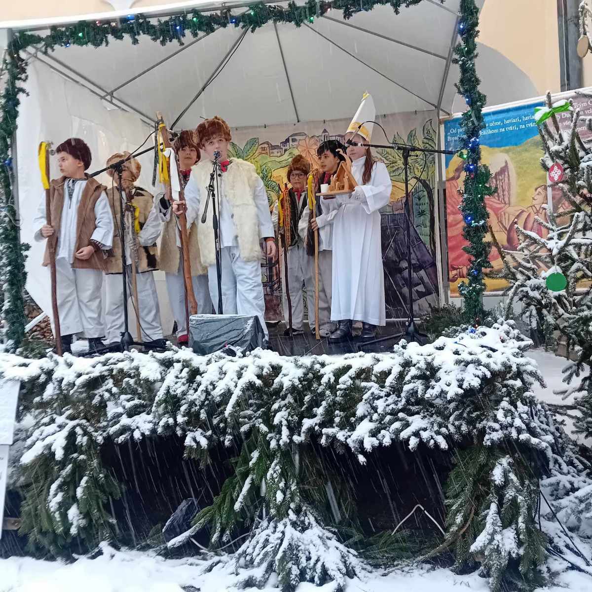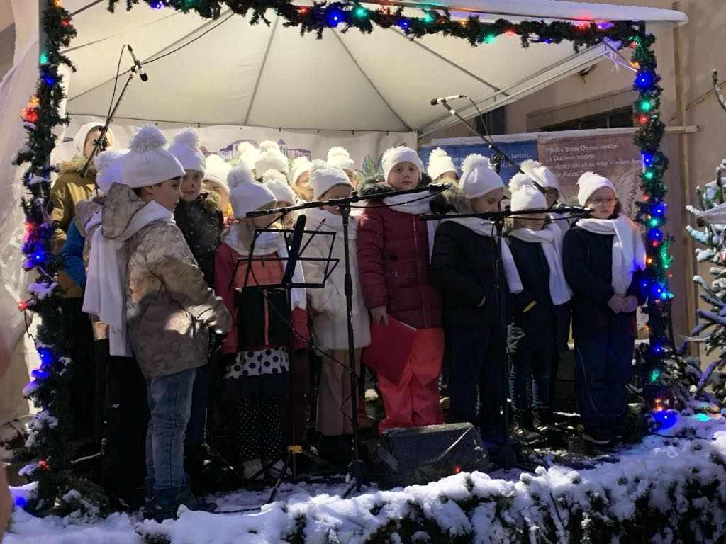 6. decembra popoludní nami už dlhoročne navštevovaného trhu sa predstavili žiaci LDO so zvykmi spájajúcimi sa so sviatkom sv. Lucie, či so „strydžími“ dňami. Pripravila p. uč. Klimková. Na živé vystupovanie sa tešili žiaci speváckeho oddelenia ZUŠ. Na novom, i keď pre náš rozrastajúci sa Zborík skoro malom pódiu, sa striedali spevy zborové s tými sólovými. Vyše hodinu trvajúci program si prišlo vypočuť mnoho rodičov, krásne vianočné ľudové koledy ako aj vianočné piesne potešili všetkých ľudí na nádvorí. Vekom starší i tí najmladší speváčikovia v bielych čiapkach a šáloch ponúkli okolostojacim pestrý program: