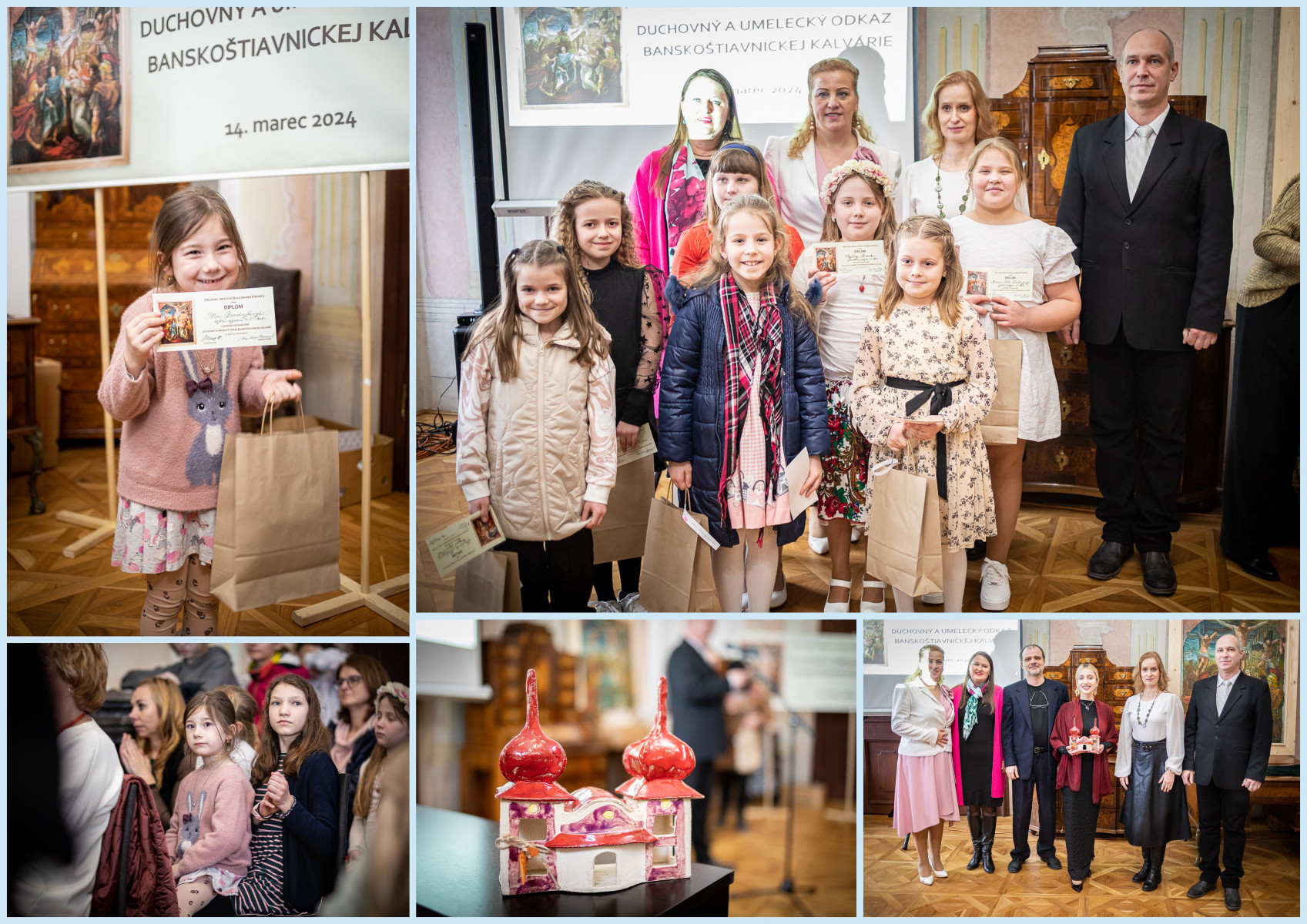 Výtvarná časť súťaže začala už po vianočných prázdninách. Oslovili sme základné školy, špeciálne školy a základné umelecké školy. Žiaci sa v období medzi Vianocami a Veľkou nocou mohli zamyslieť nad duchovným odkazom Kalvárie. V rozhraní týchto dvoch významných cirkevných sviatkov sa mohli inšpirovať výjavmi z krížovej cesty ako aj vnútornou výzdobou našej banskoštiavnickej dominanty. V tomto materiálnom svete sa deti a mládež mali možnosť na chvíľu duchovne obohatiť a vnútorne utíšiť. Odborná porota pracovala v zložení: akademický sochár a keramik Vladimír Oravec, ktorého diela zdobia múr oproti radnici, viaceré podniky, či dvorček fontánou štyroch povodí v „našej“ ZUŠ. Jeho diela boli vystavené v Maroku , Anglicku, Japonsku. Arpád Pál, banskoštiavnický umelec pracujúci s dušou krásneho dreva a drahých kameňov a kovov. Jeho diela dostali darom napríklad Peter Sagan, či anglická kráľovná Alžbeta II.. Iveta Chovanová – pamiatkárka, ktorá sa roky venuje objavovaniu krás Banskej Štiavnice, aby ich prinášala ľuďom v rôznych publikáciách. Takýto odborníci mali 6. marca 2024 ťažkú úlohu, vybrať spomedzi 300 výtvarných diel tie najkrajšie a najhodnotnejšie. Rozhodli sa oceniť 78 detí. Úspešnými boli títo naši žiaci výtvarného odboru: